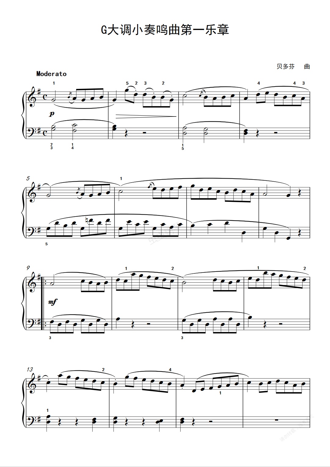 钢琴谱:2级-大型乐曲- G大调小奏鸣曲