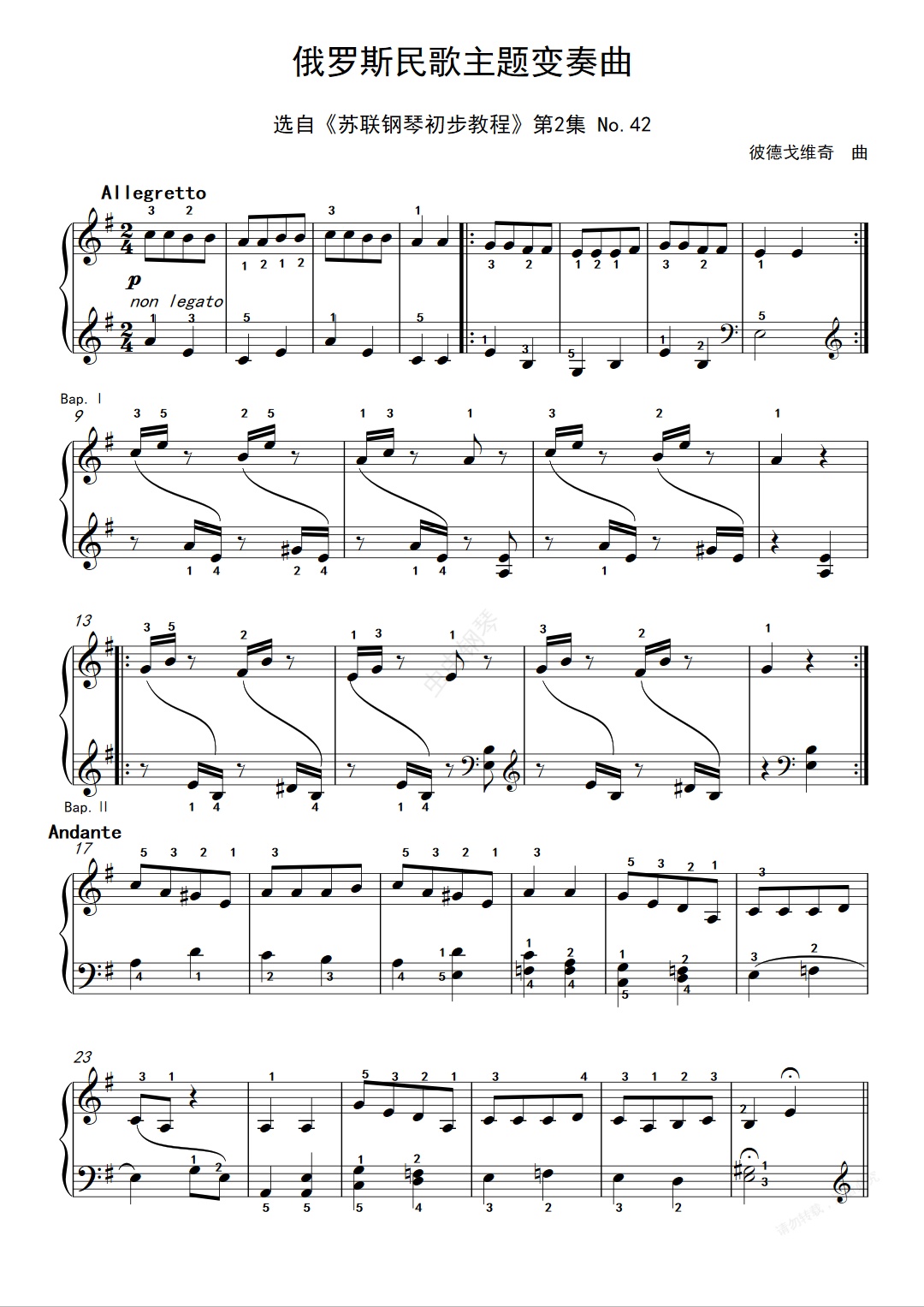 钢琴谱:2级-大型乐曲-俄罗斯民歌主题变奏曲