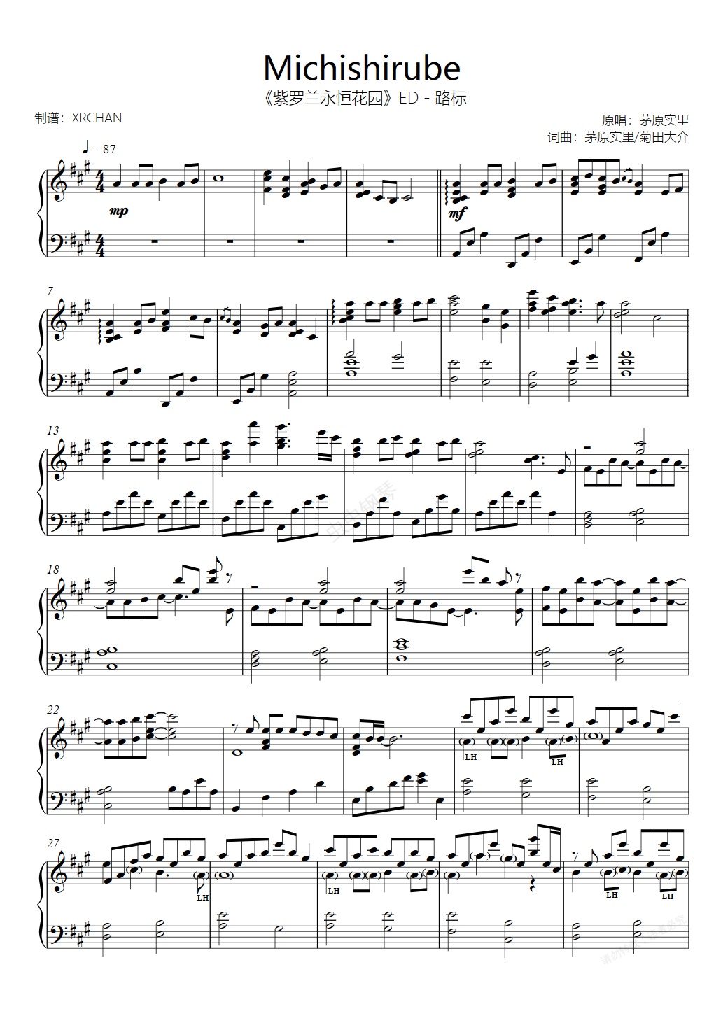钢琴谱:《紫罗兰永恒花园》ED 路标 A叔版简化