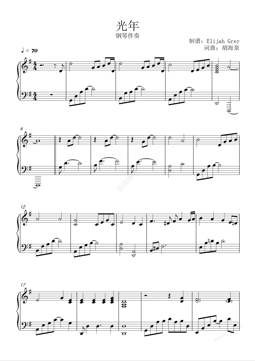 钢琴谱:光年-完美钢琴伴奏-胡海泉