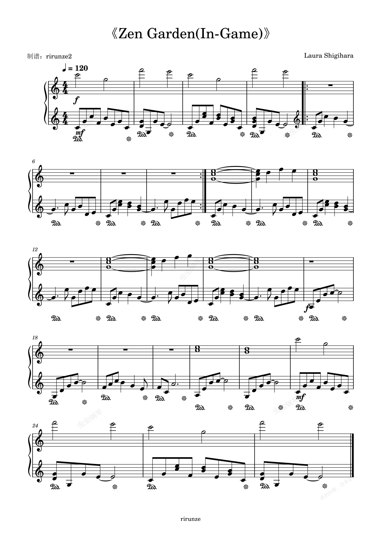 钢琴谱:植物大战僵尸-禅境花园[Zen Garden]【独奏钢琴谱】