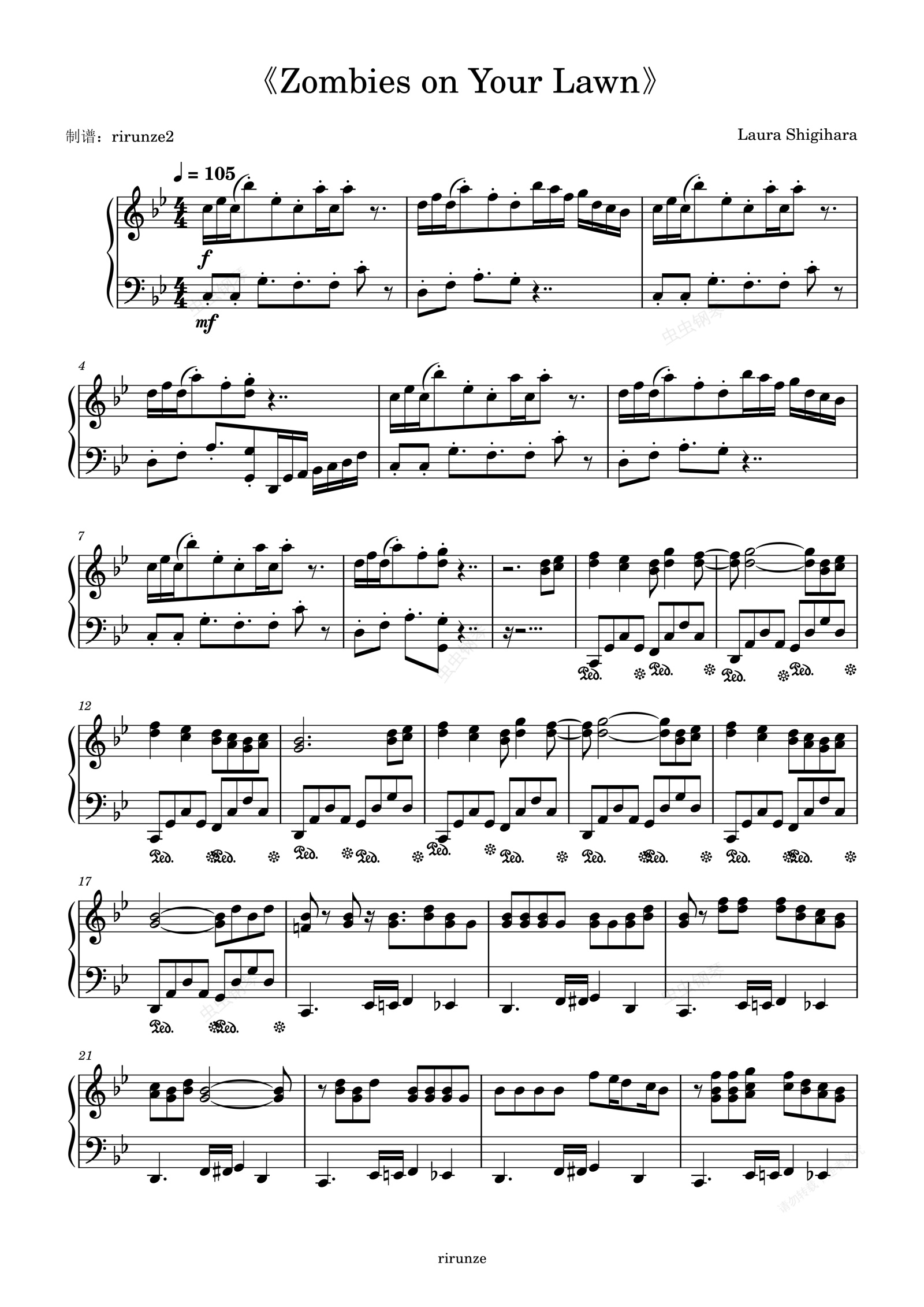 钢琴谱:植物大战僵尸-主题曲[Zombies on Your Lawn]【独奏钢琴谱】