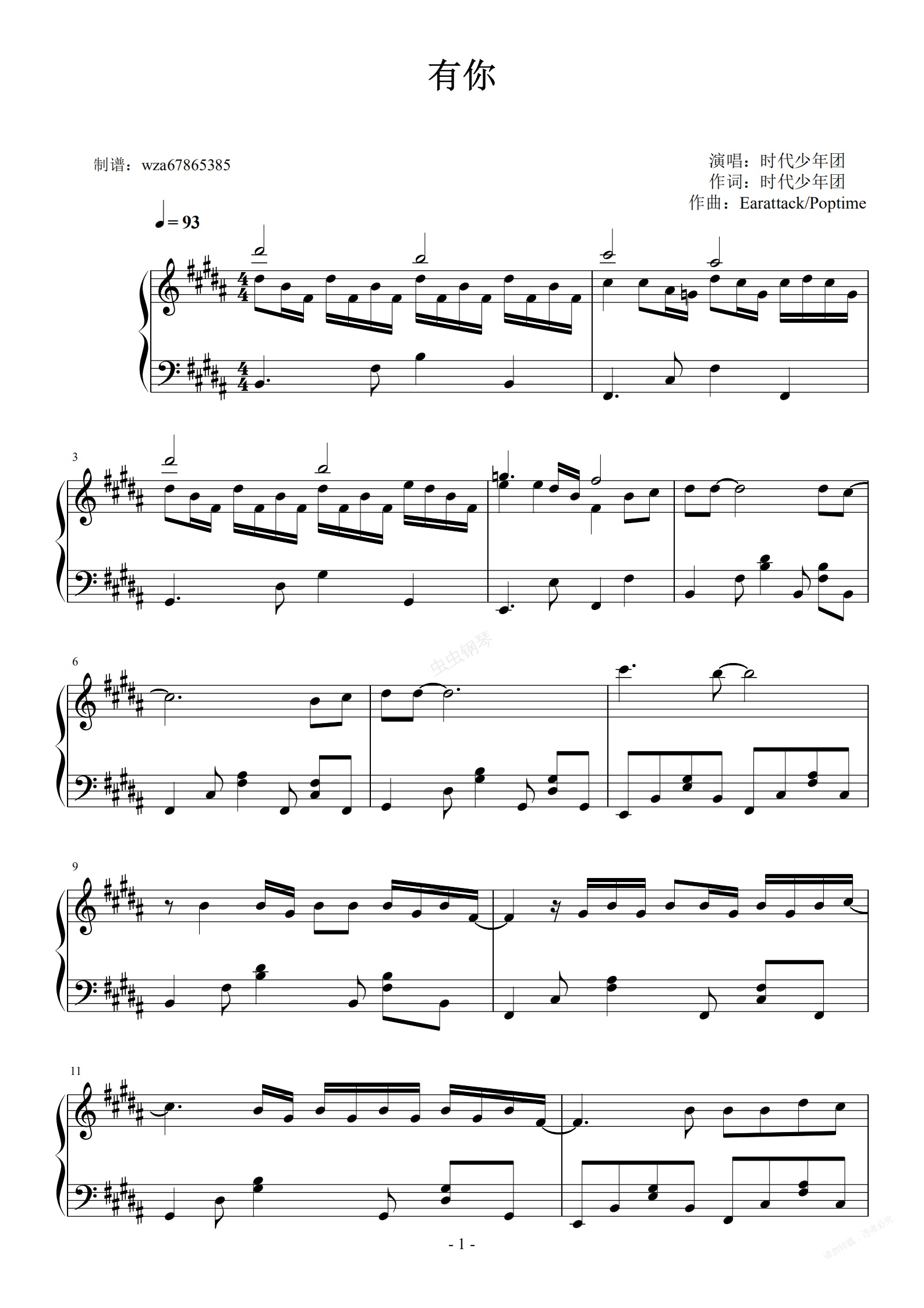 钢琴谱:有你