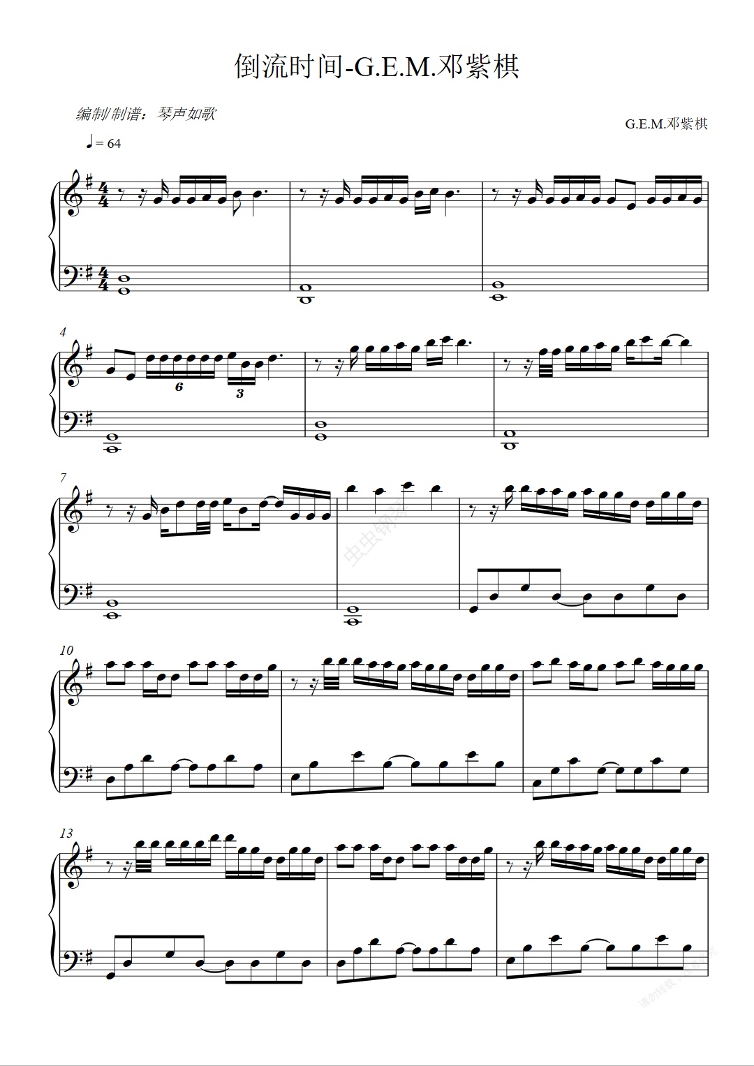 钢琴谱:G.E.M. 邓紫棋-倒流时间 【好听易弹】
