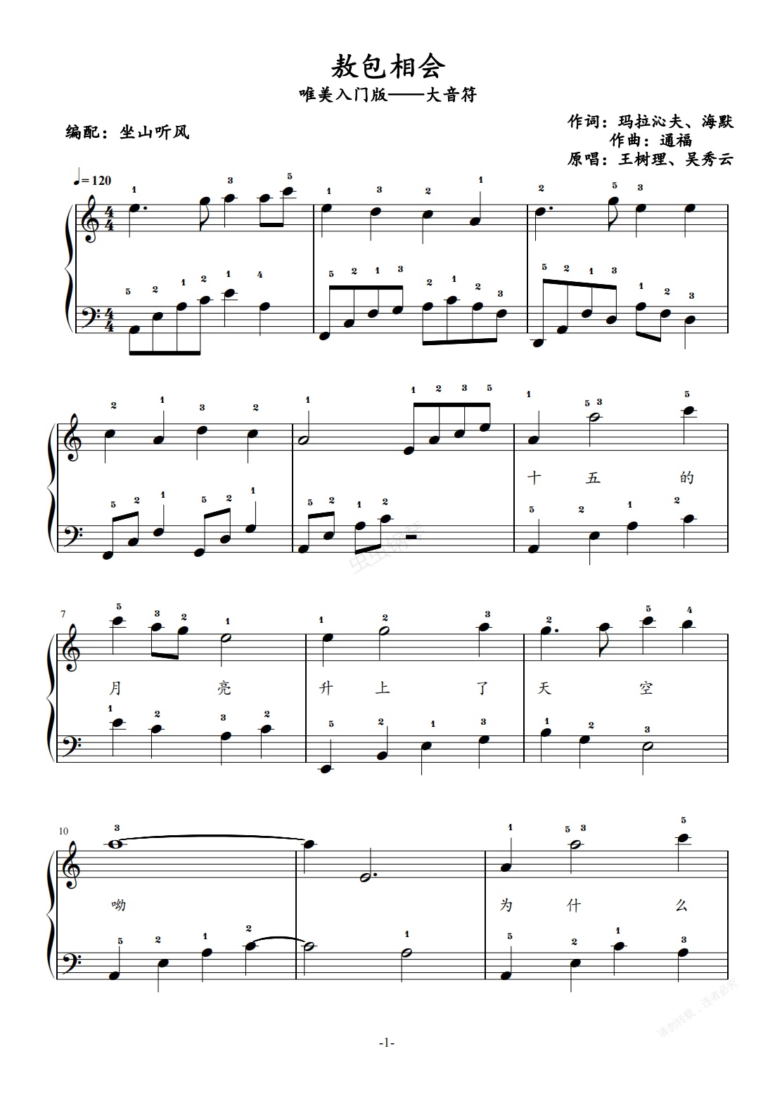 钢琴谱:敖包相会——唯美入门版