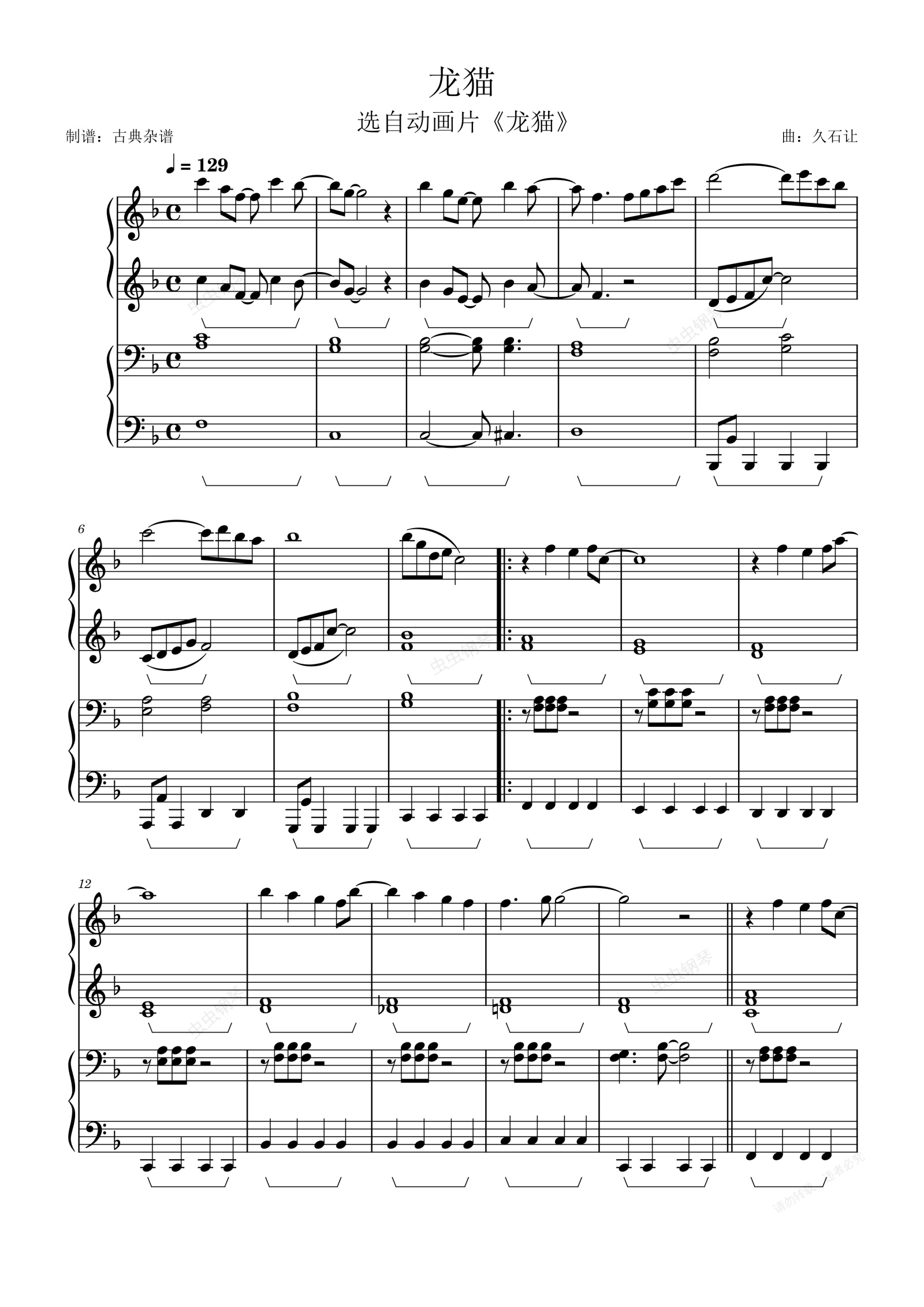 钢琴谱:龙猫主题曲 四手联弹(简单版)久石让