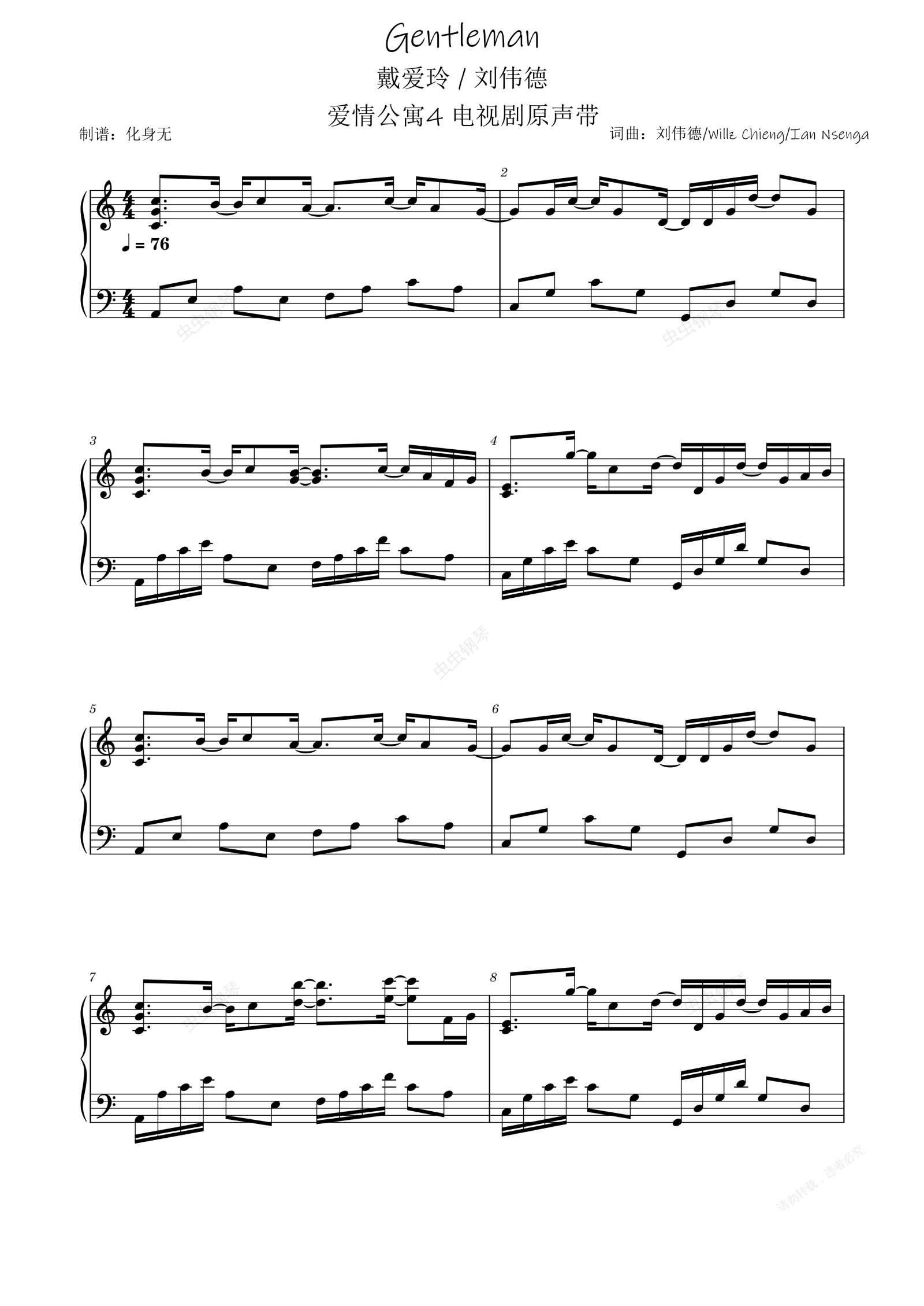 钢琴谱:Gentleman C调版 爱情公寓4插曲
