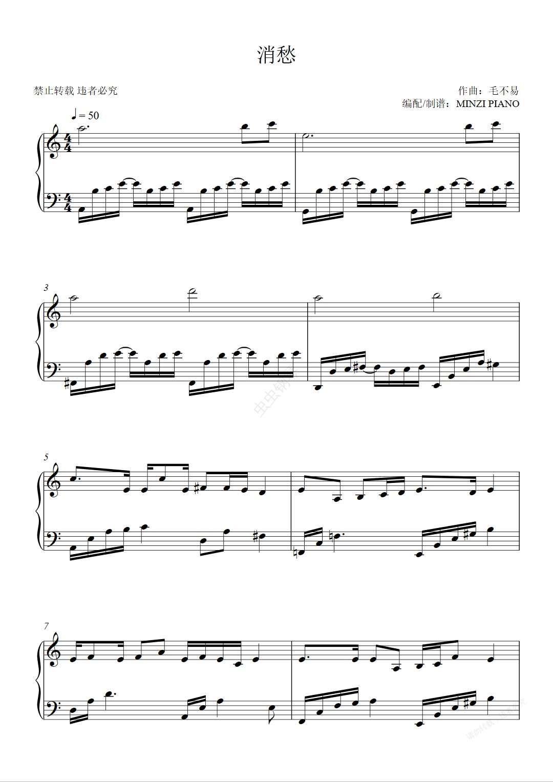 钢琴谱:毛不易《消愁》C调 好听易弹