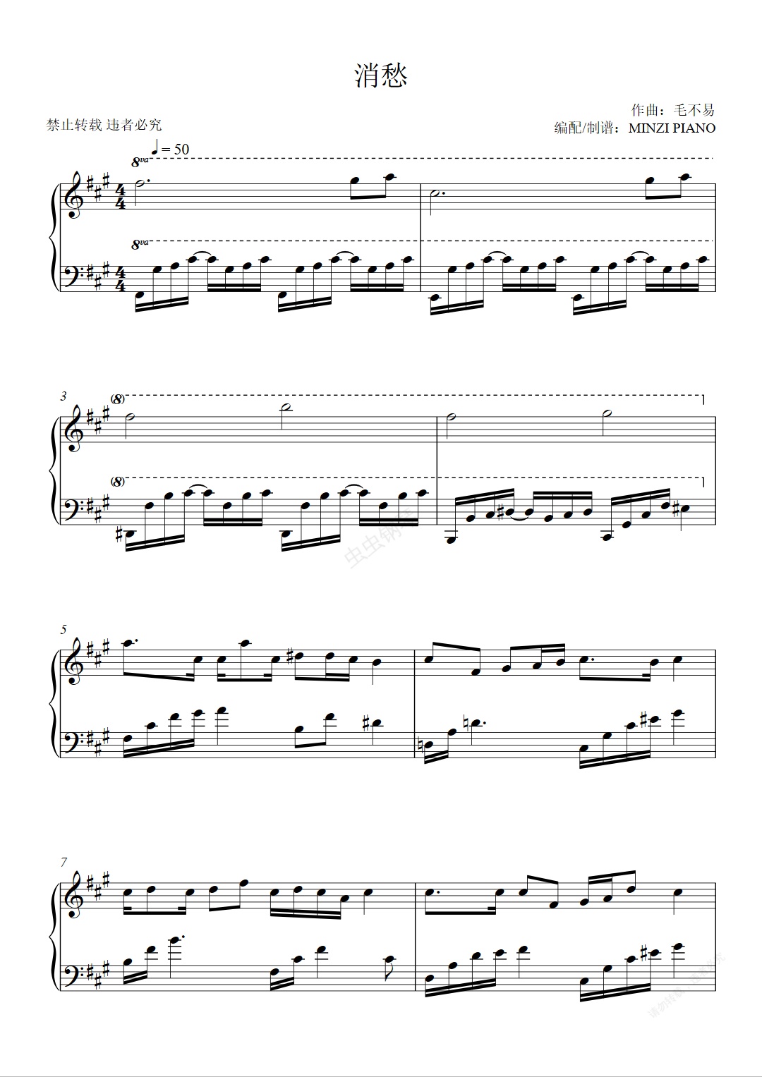 钢琴谱:毛不易《消愁》A调 好听易弹