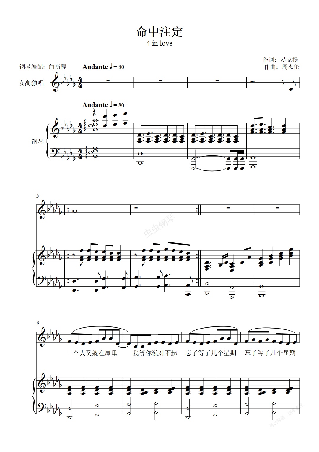 钢琴谱:命中注定4 in love 钢琴弹唱(附歌词)