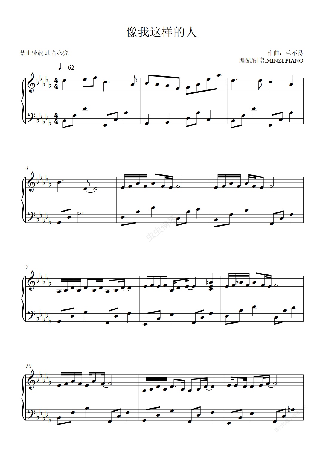 钢琴谱:毛不易《像我这样的人》原调 好听易弹