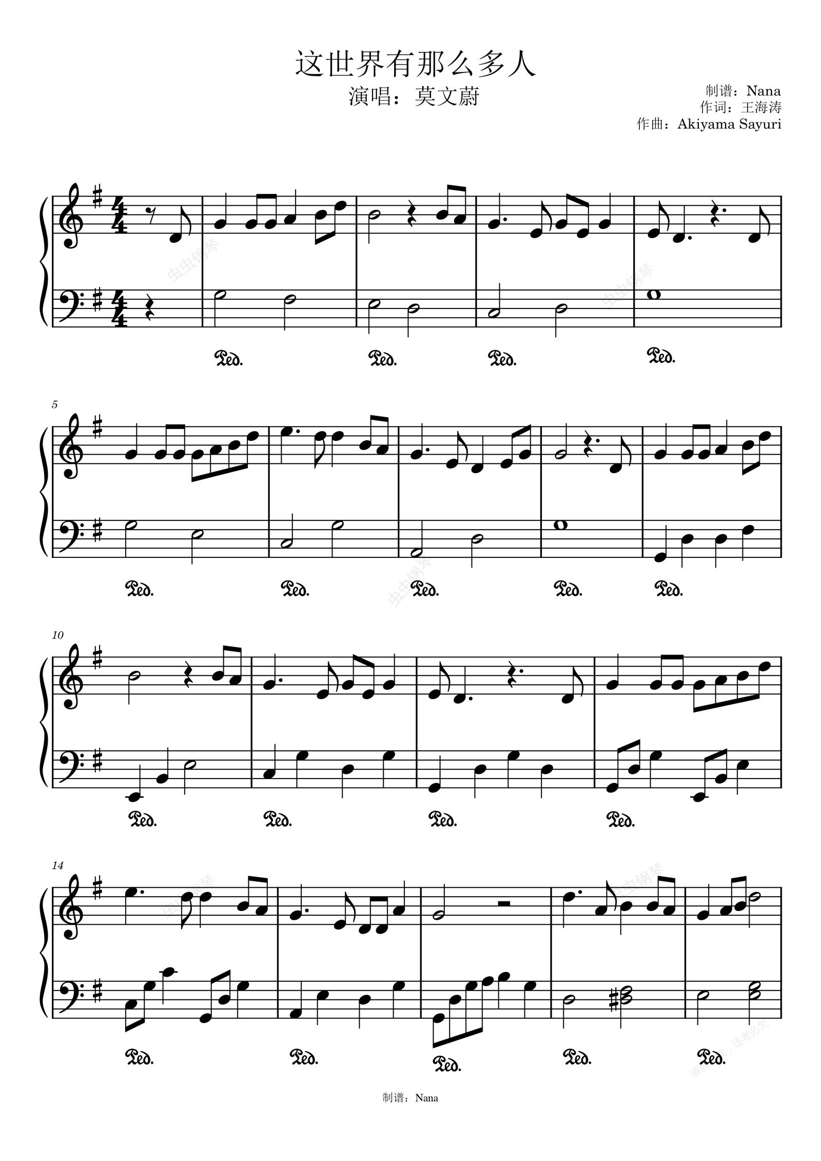 钢琴谱:这世界那么多人—莫文蔚G调