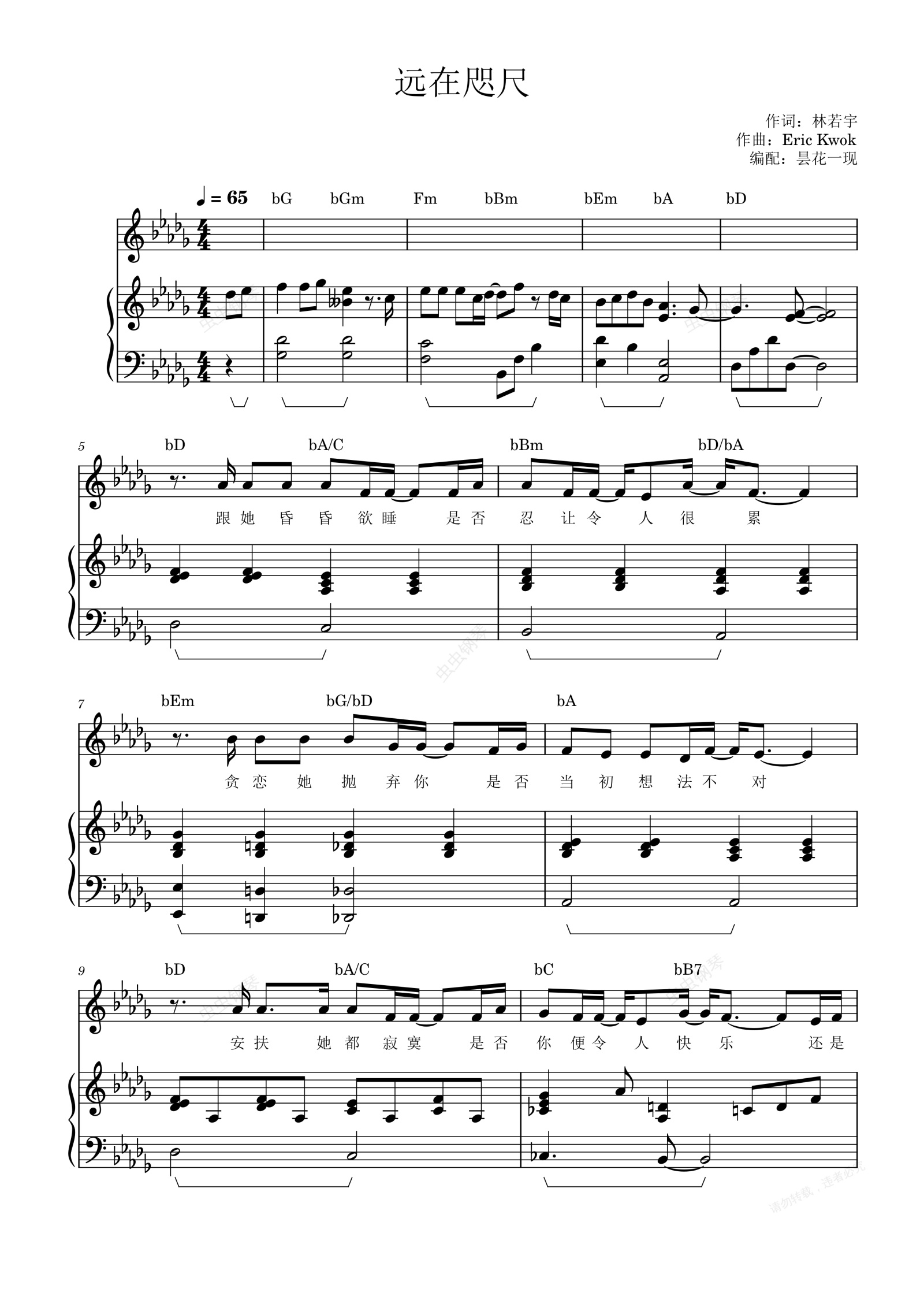 钢琴谱:远在咫尺 陈奕迅(弹唱谱)