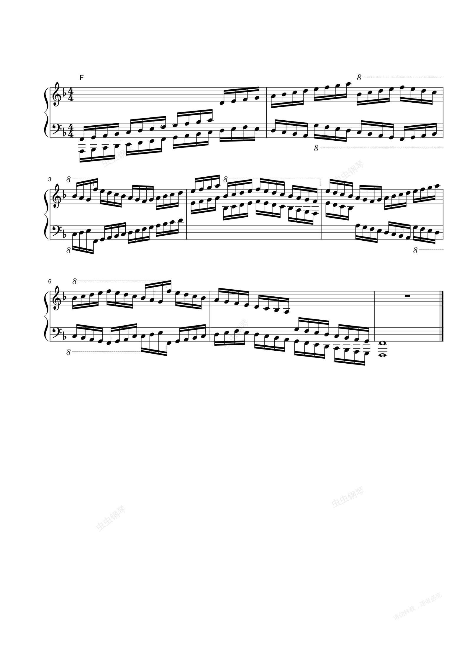 钢琴谱:01第九级 F大调音阶