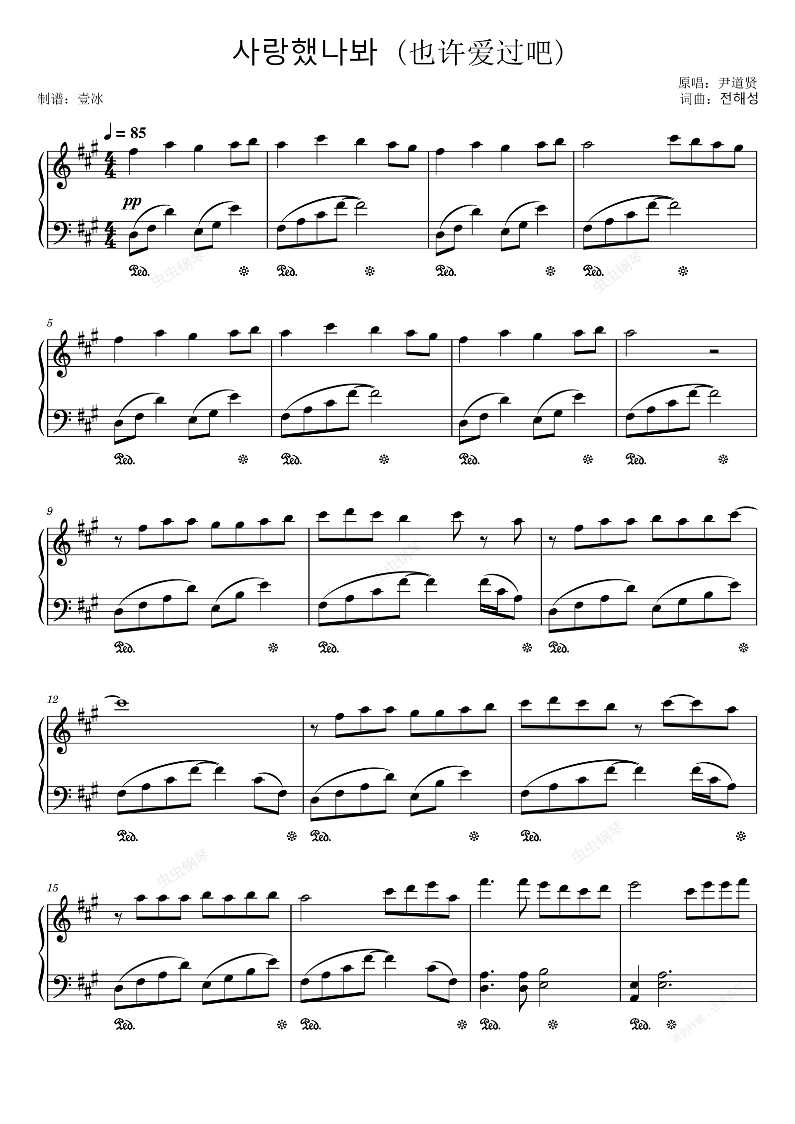 钢琴谱:사랑했나봐 (也许爱过吧)-原调版