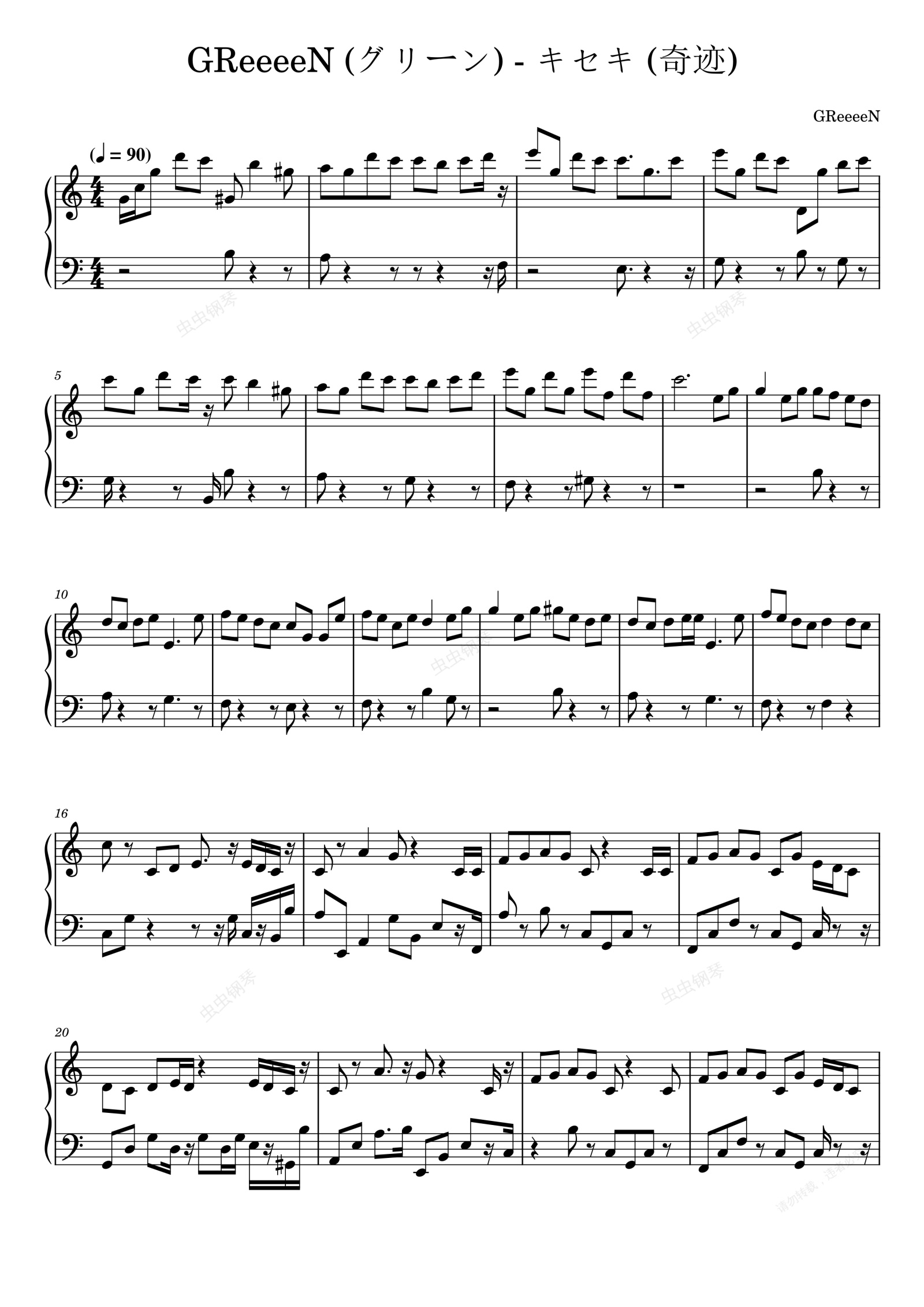钢琴谱:GReeeeN (グリーン) - キセキ (奇迹)