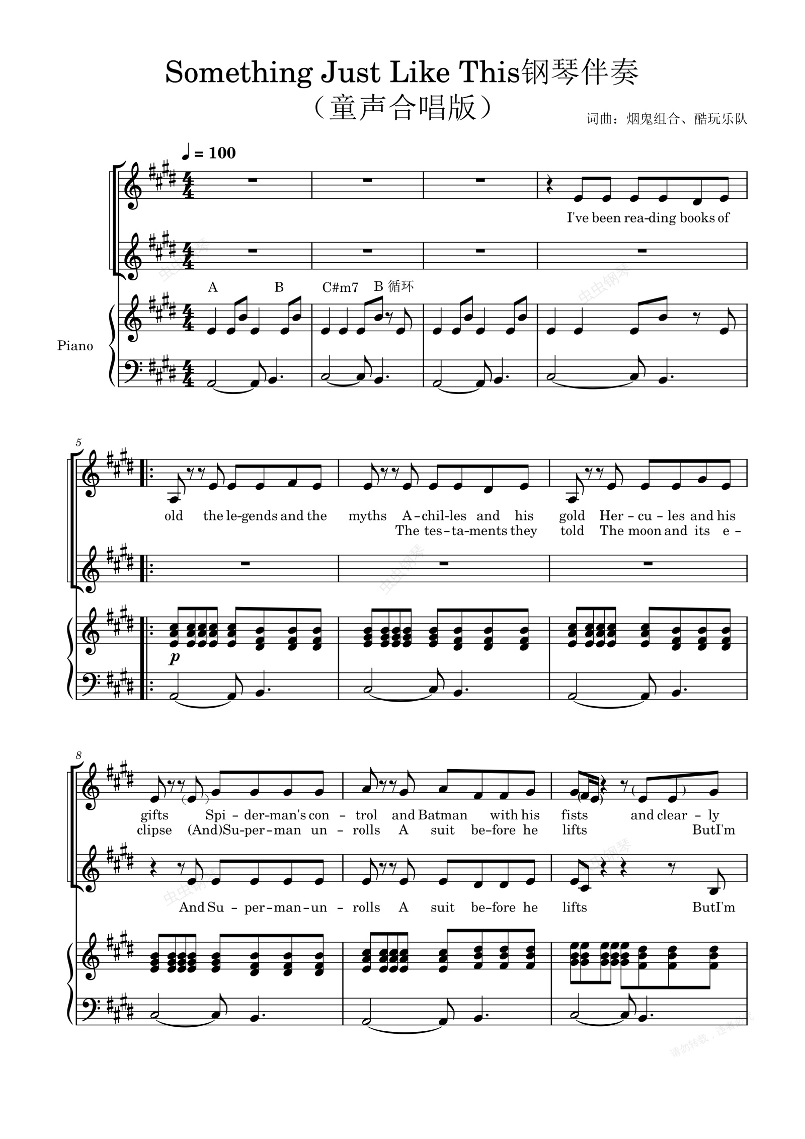 钢琴谱:Something Just Like This