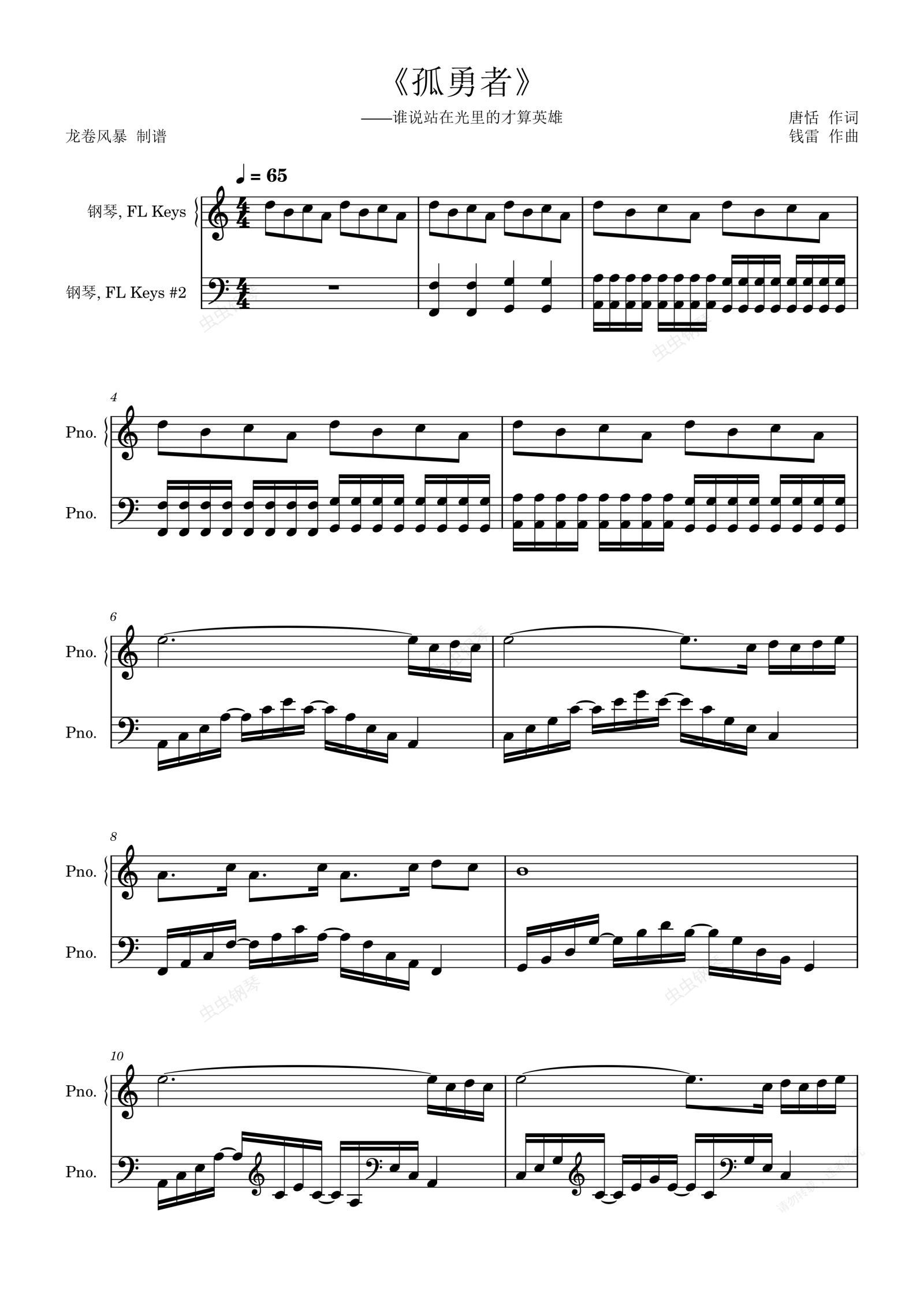 钢琴谱:《孤勇者》陈奕迅(C调完美演奏版)(英雄联盟双城之战主题曲)