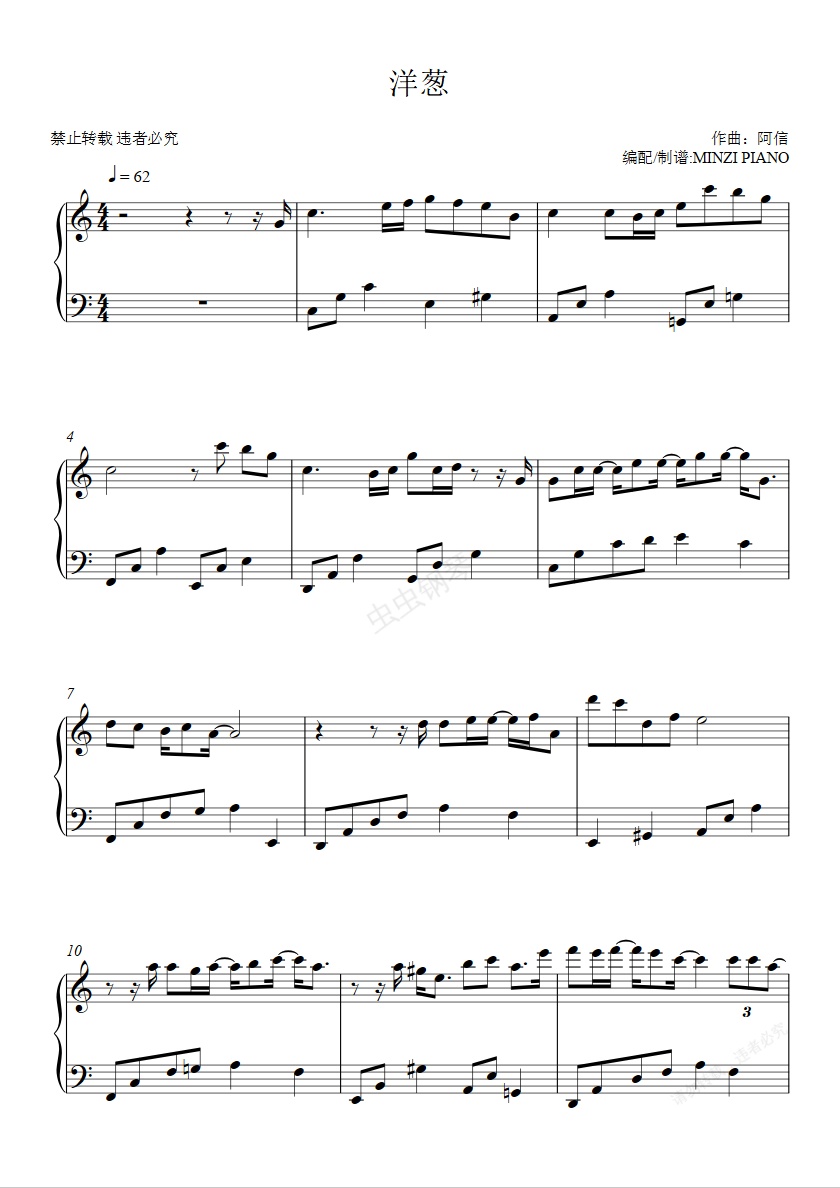 钢琴谱:杨宗纬《洋葱》好听易弹
