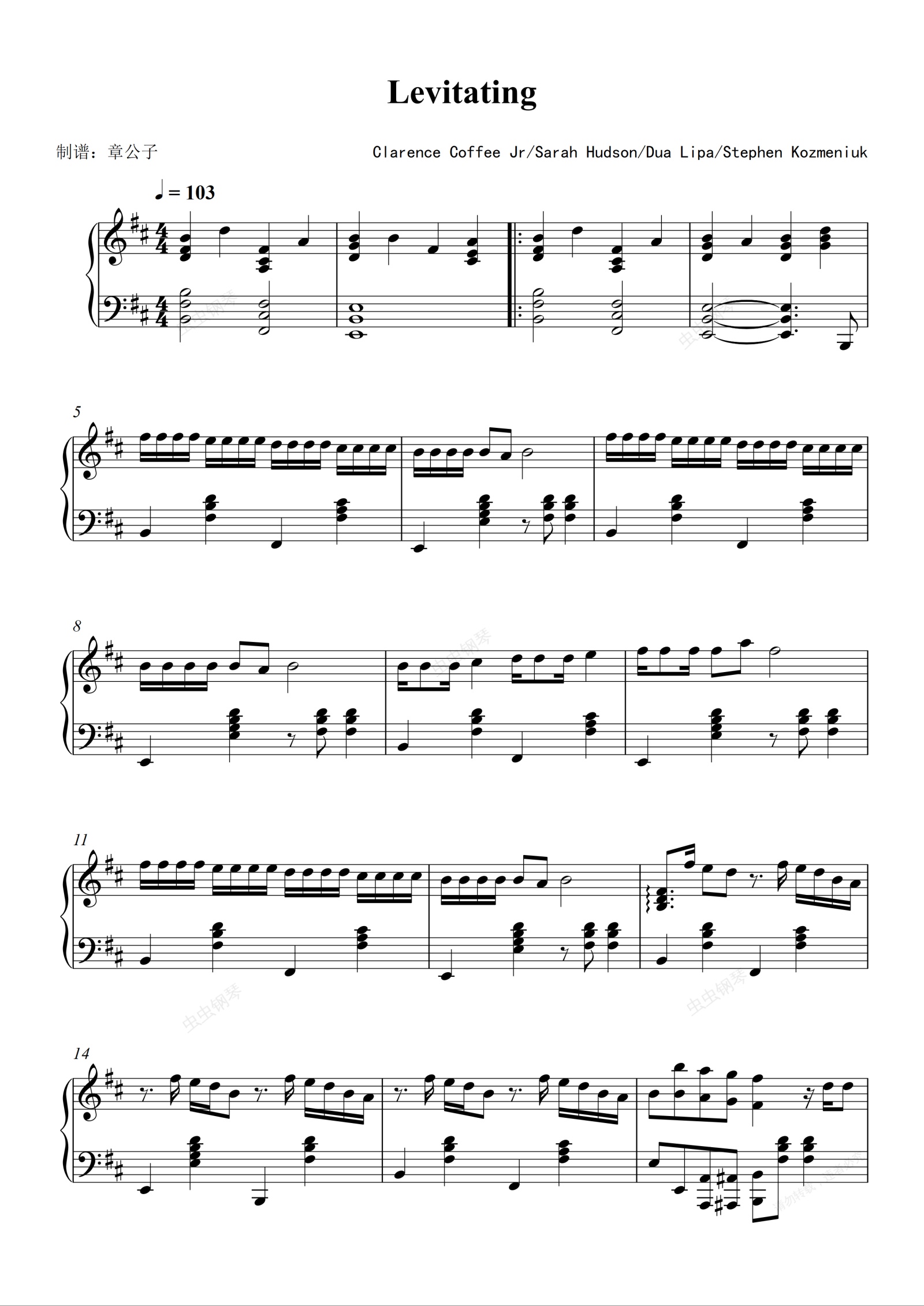 钢琴谱:《Levitating》- Dua Lipa 独奏谱