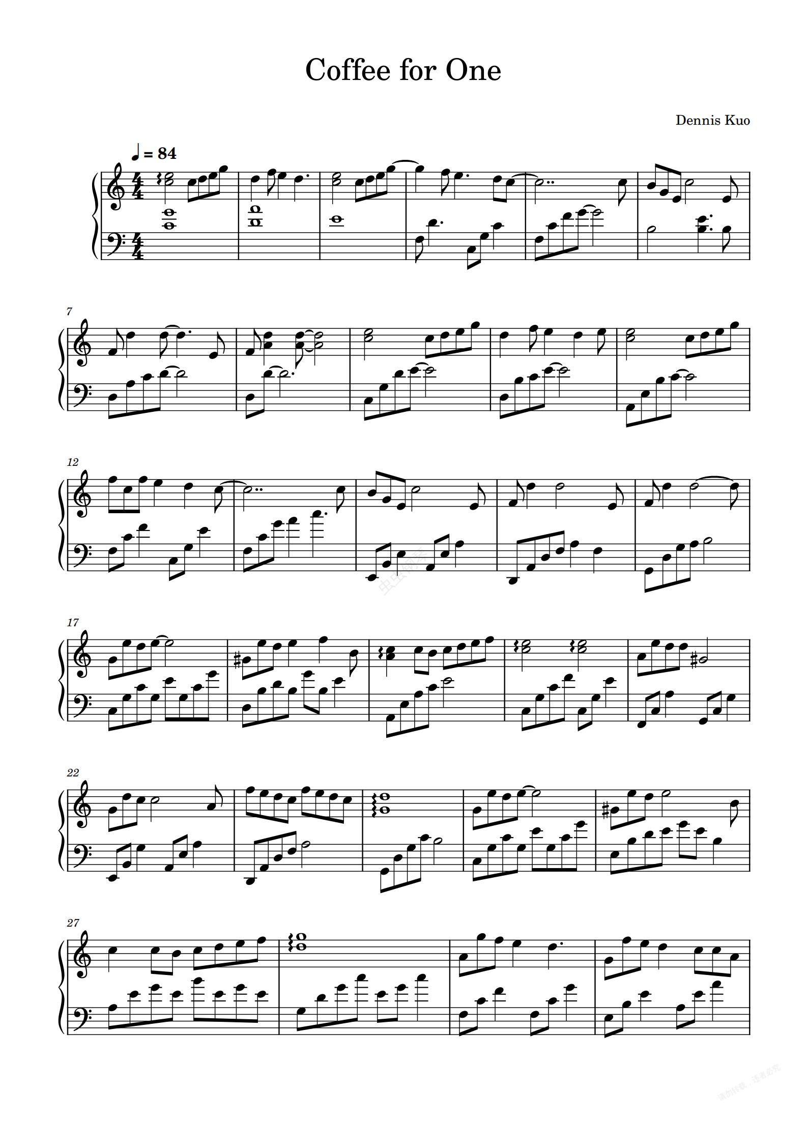 钢琴谱:Coffee for One