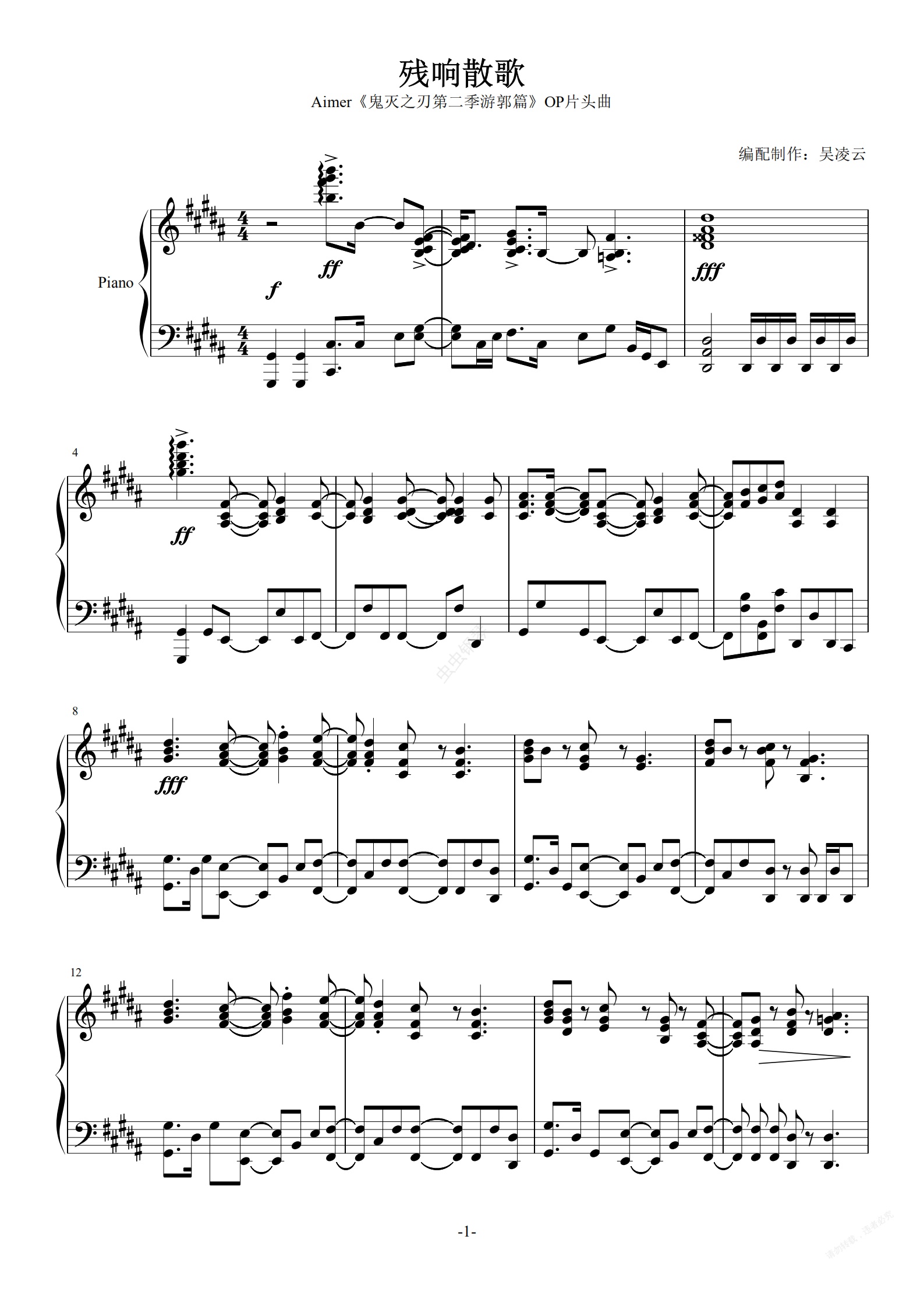 钢琴谱:残响散歌-Aimer《鬼灭之刃第二季游郭篇》OP片头曲 残響散歌 吴凌云钢琴完美演奏版