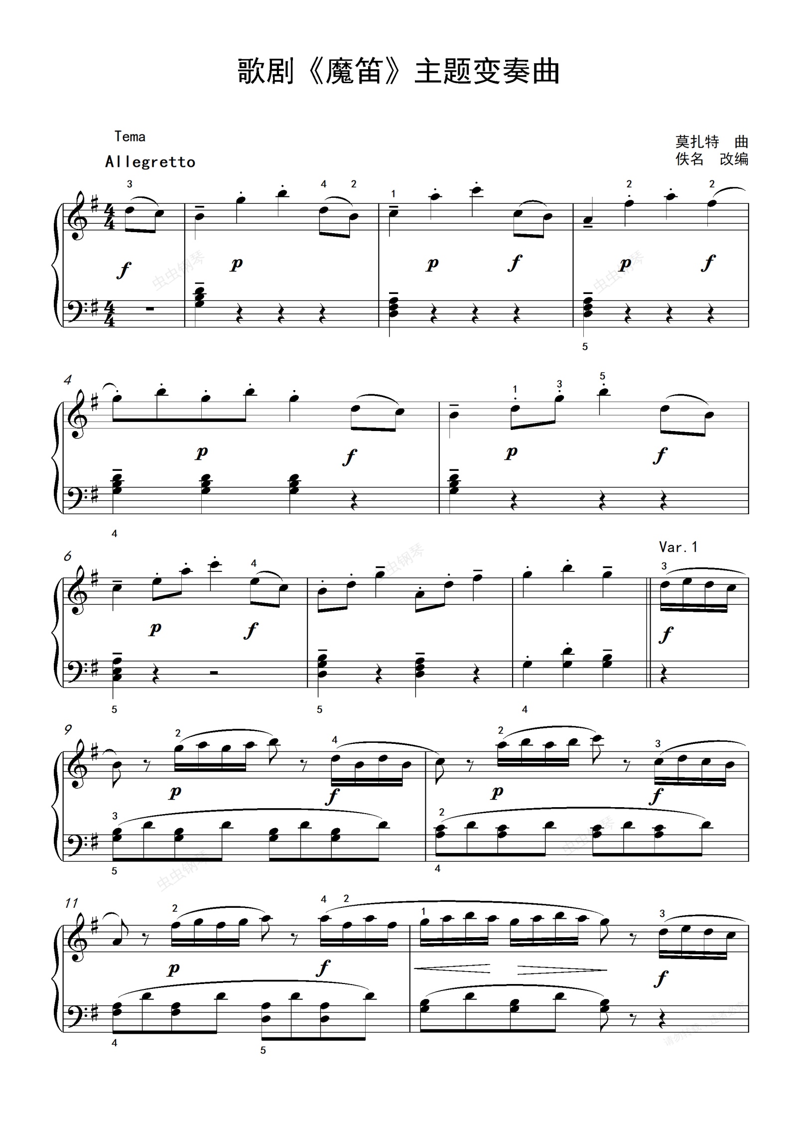 钢琴谱:3级-大型乐曲-《魔笛》主题变奏曲