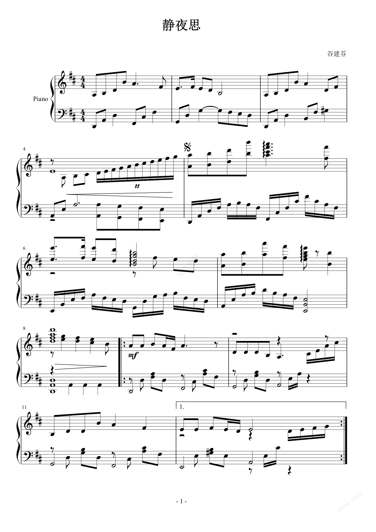 钢琴谱:静夜思