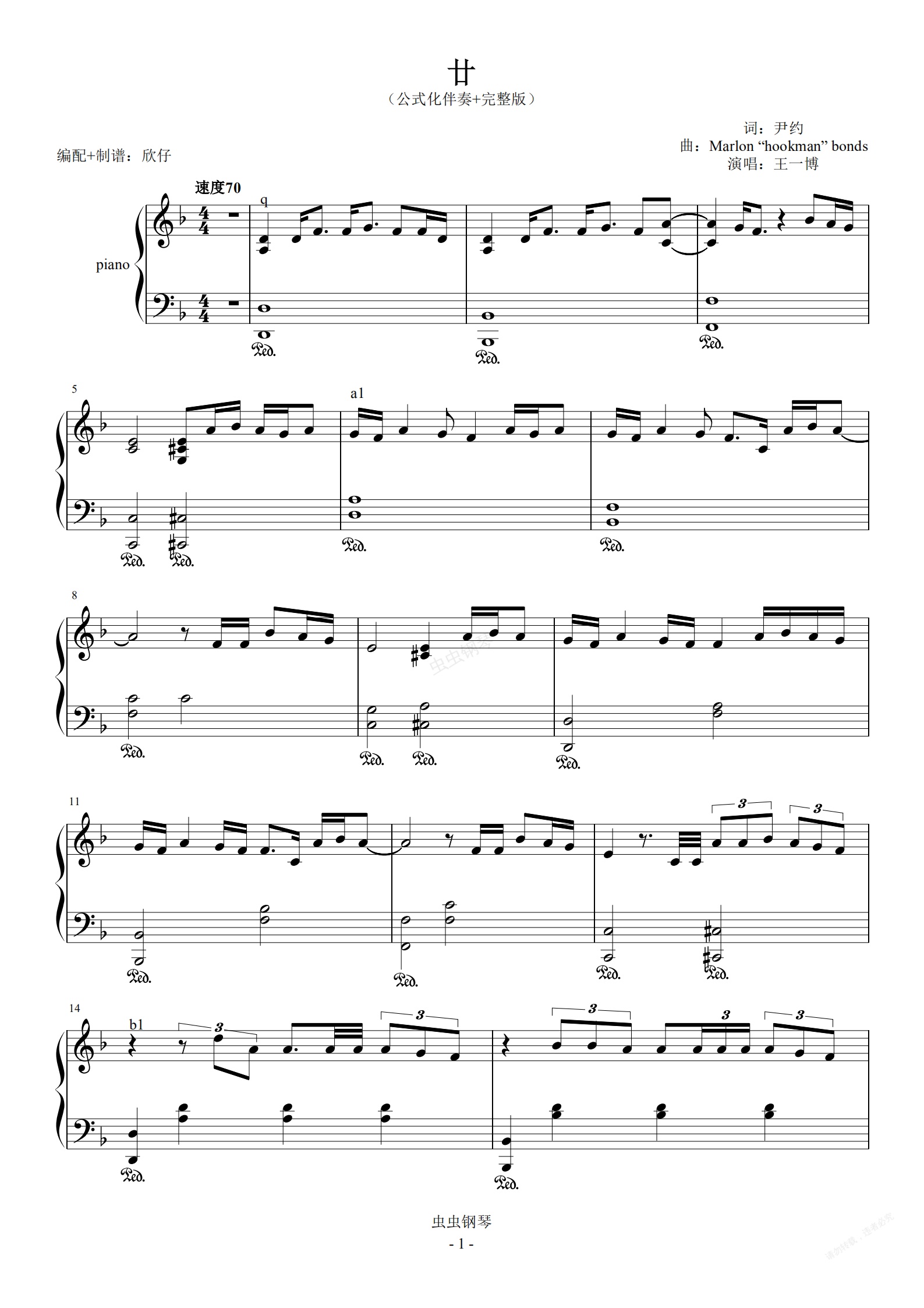 钢琴谱:王一博-F《廿》(公式化伴奏+完整版)