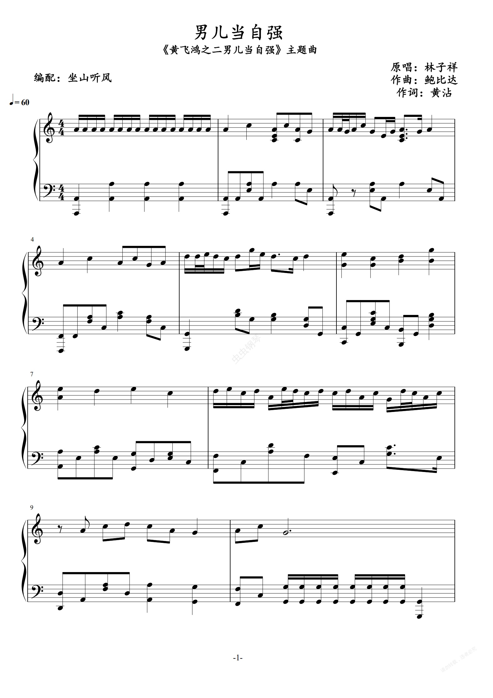 钢琴谱:男儿当自强——《黄飞鸿之二男儿当自强》主题曲
