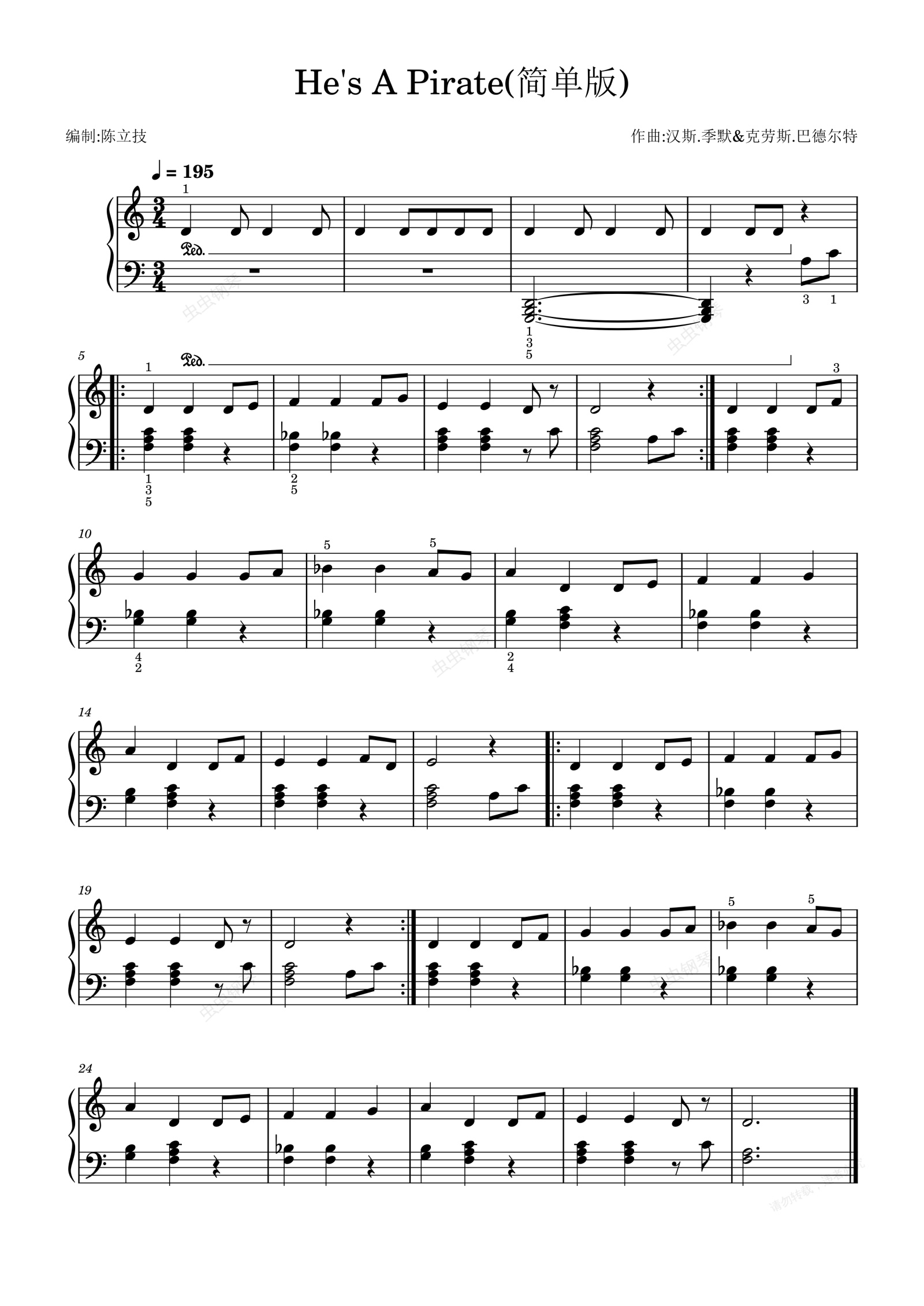 钢琴谱:加勒比海盗主题曲 He's A Pirate(好听易弹)初学者可弹