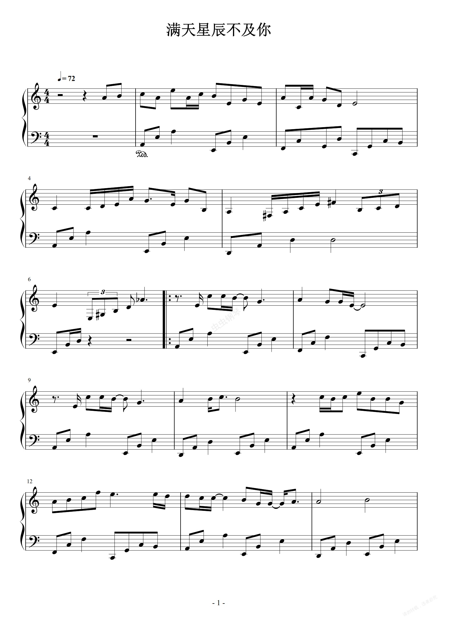 钢琴谱:满天星辰不及你 C调简易版 ycccc