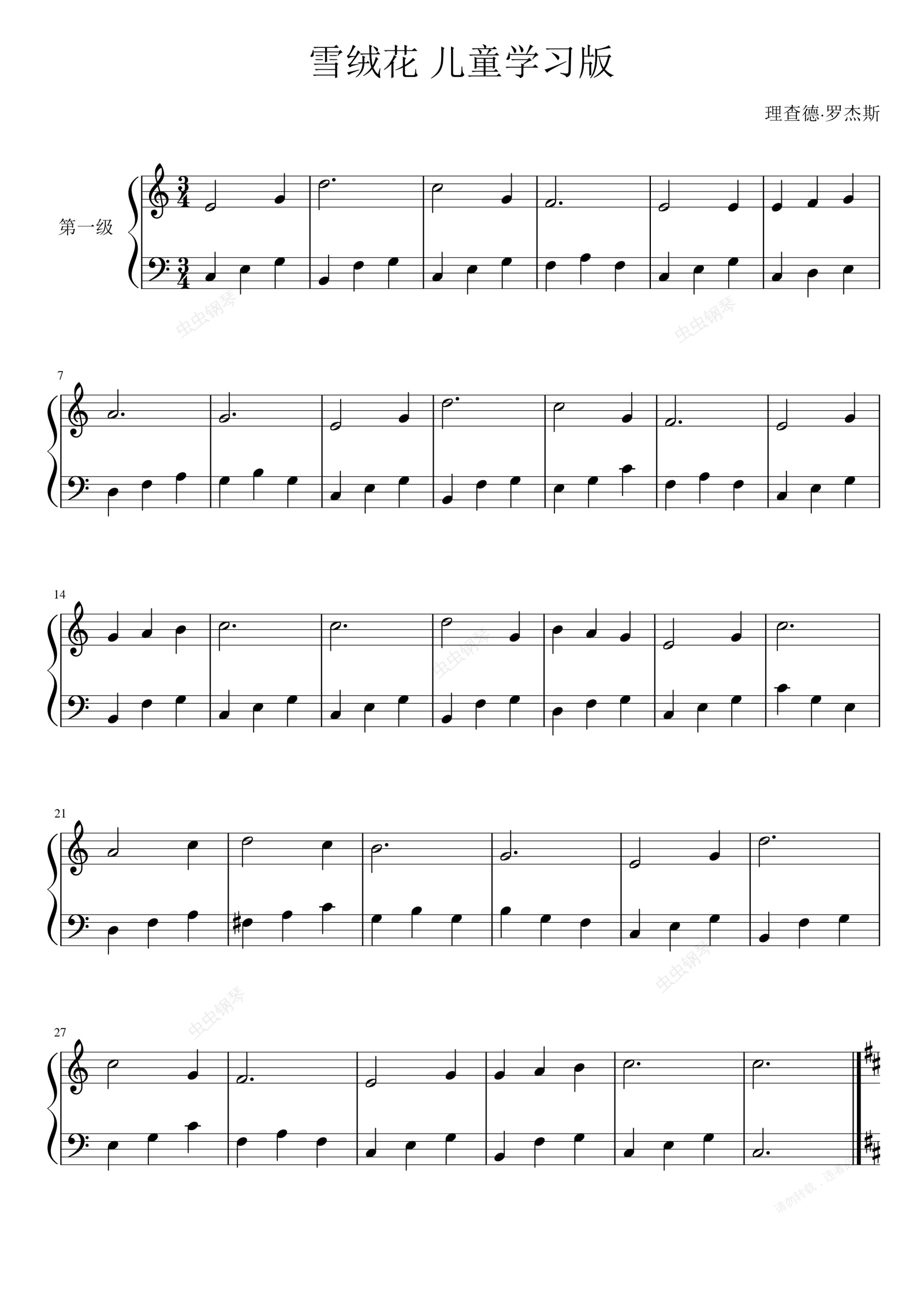 钢琴谱:雪绒花 儿童学习版