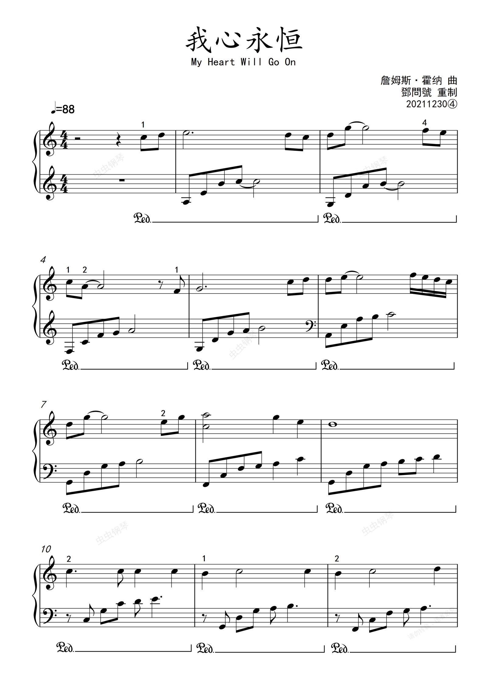 钢琴谱:《我心永恒》(My Heart Will Go On)C大调精简演奏版