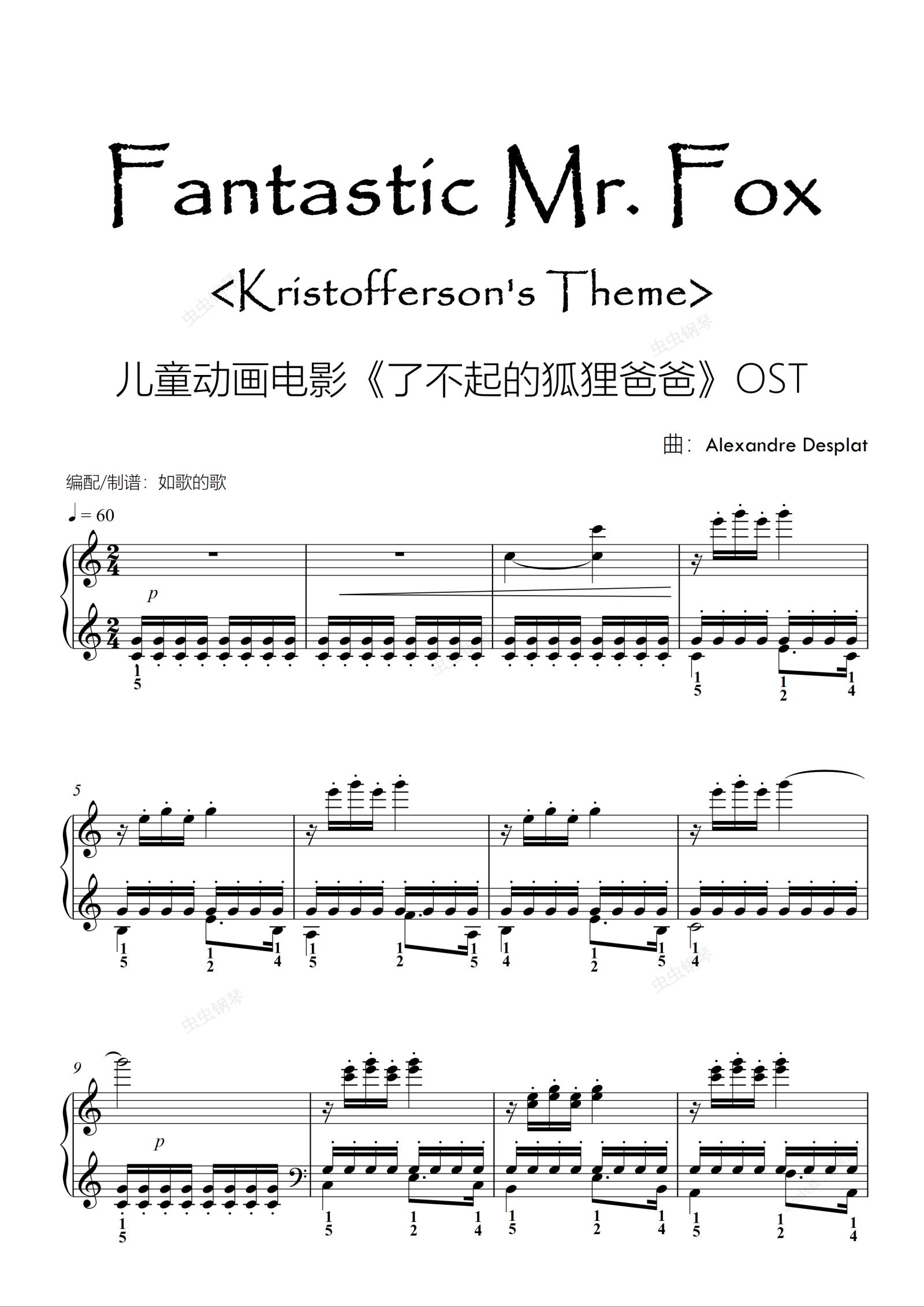 钢琴谱:了不起的狐狸爸爸Fantastic Mr Fox动画电影之Kristofferson's Theme综艺爱用BGM