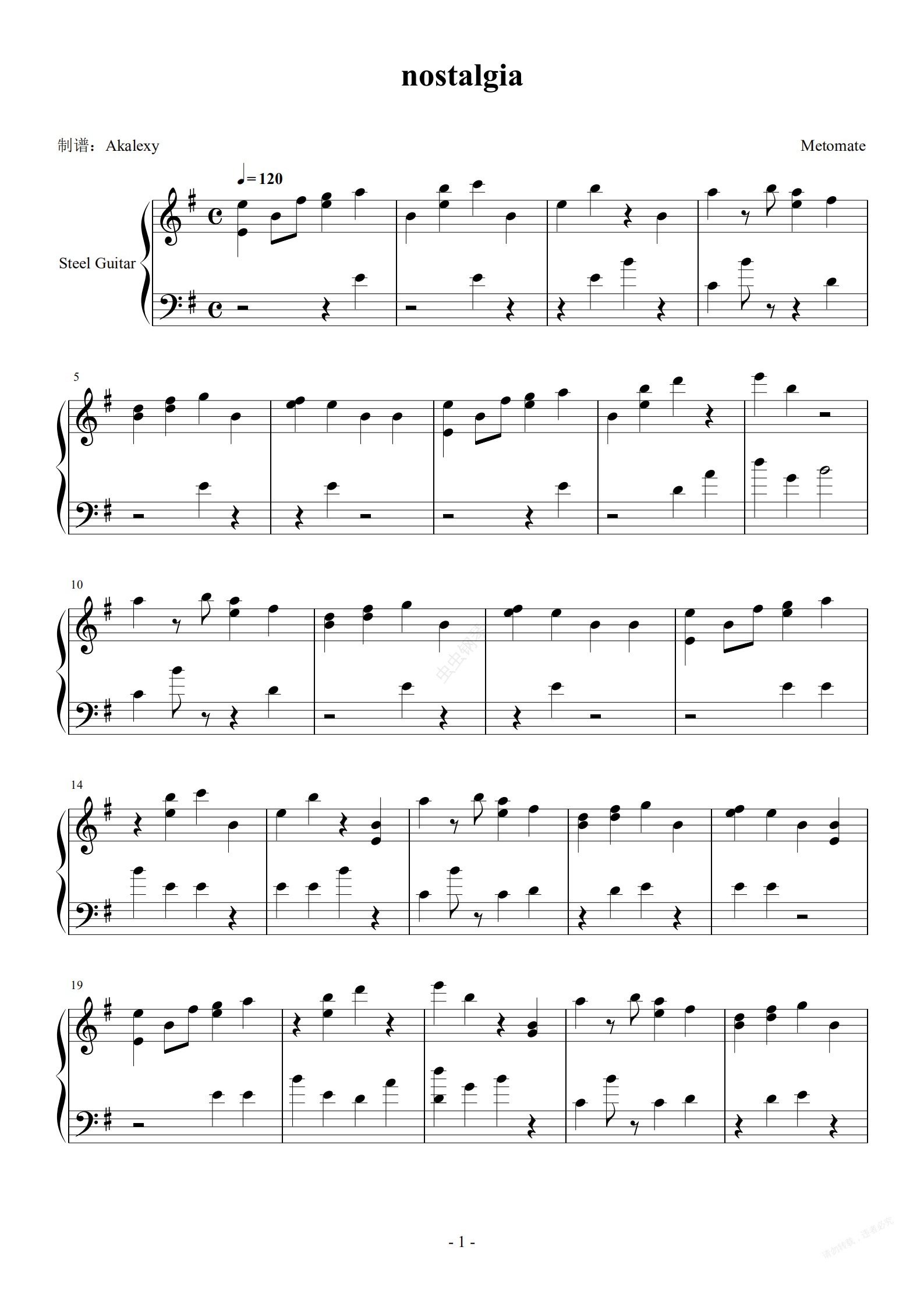 钢琴谱:纸上的魔法使《Nostalgia》OST