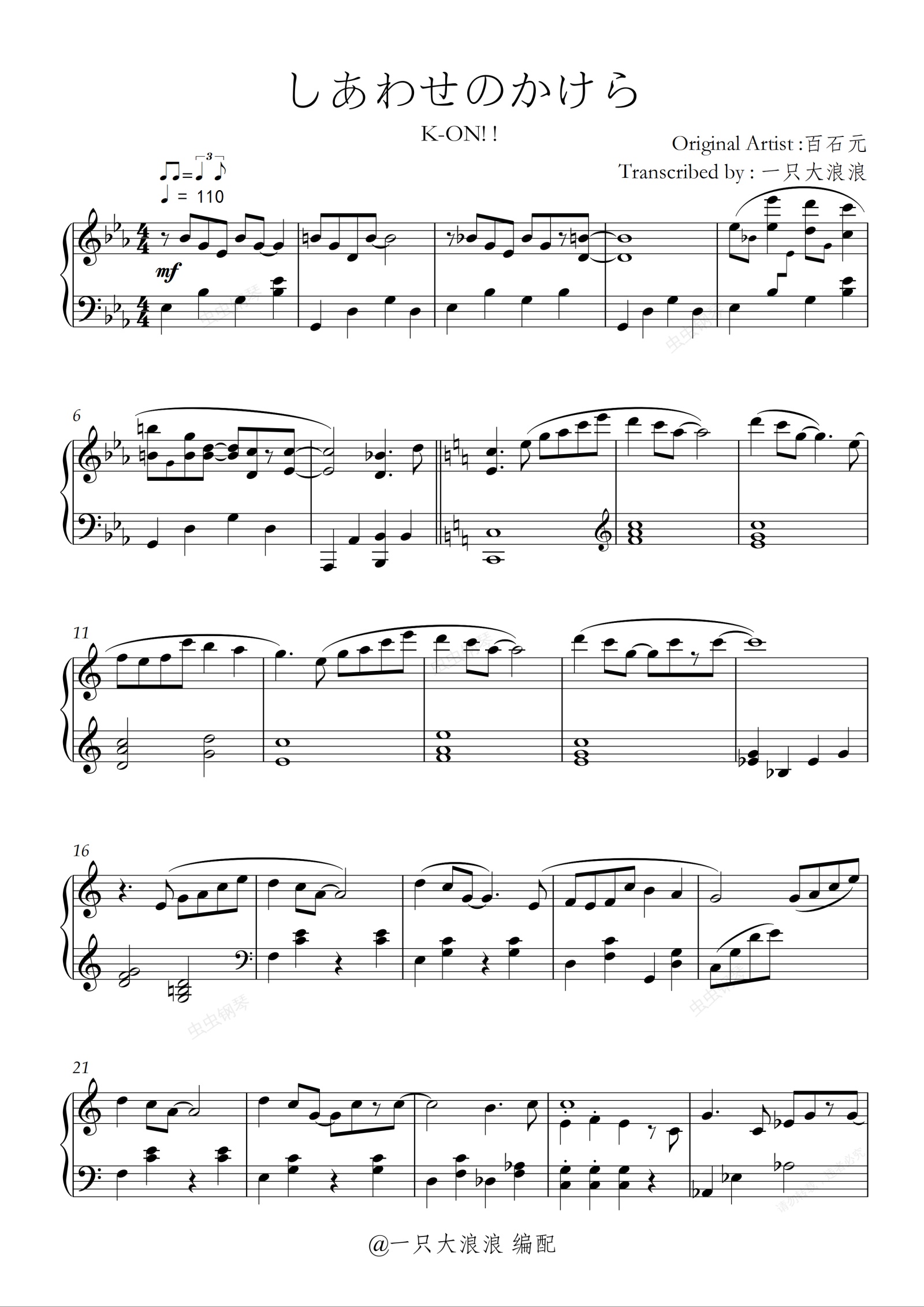 钢琴谱:轻音少女第二季 第24话 BGM《しあわせのかけら》