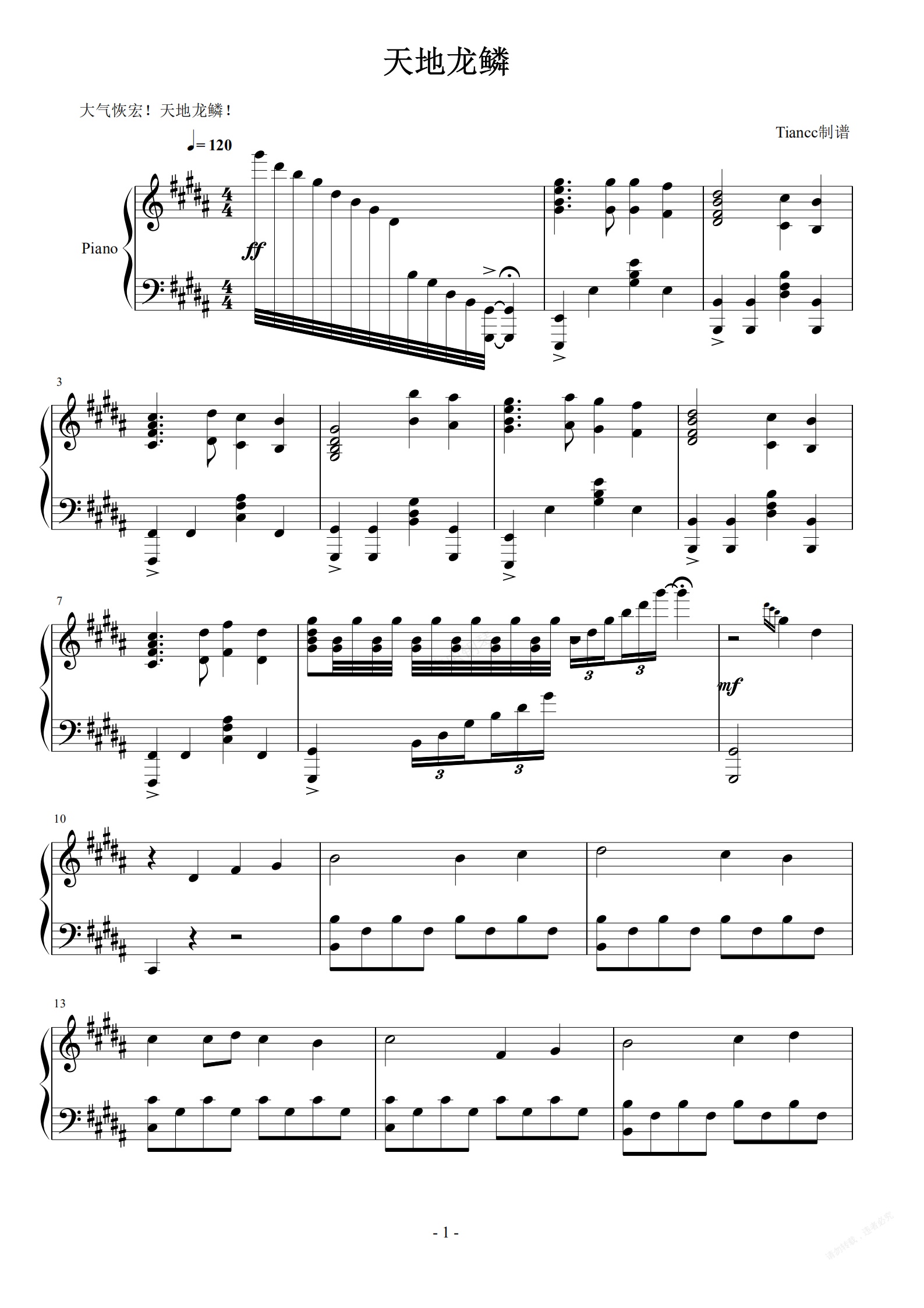 钢琴谱:《天地龙鳞》大气恢宏演奏版!299难度