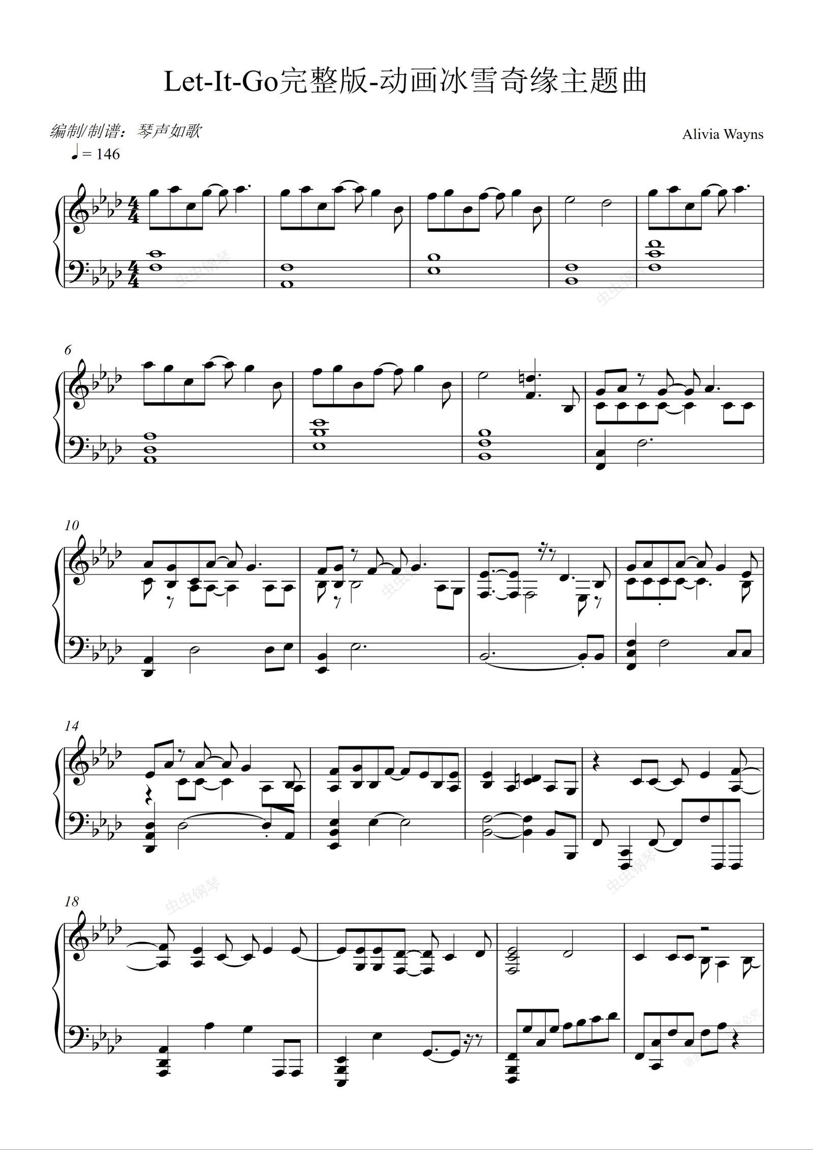 钢琴谱:Let It Go完整版-动画冰雪奇缘主题曲