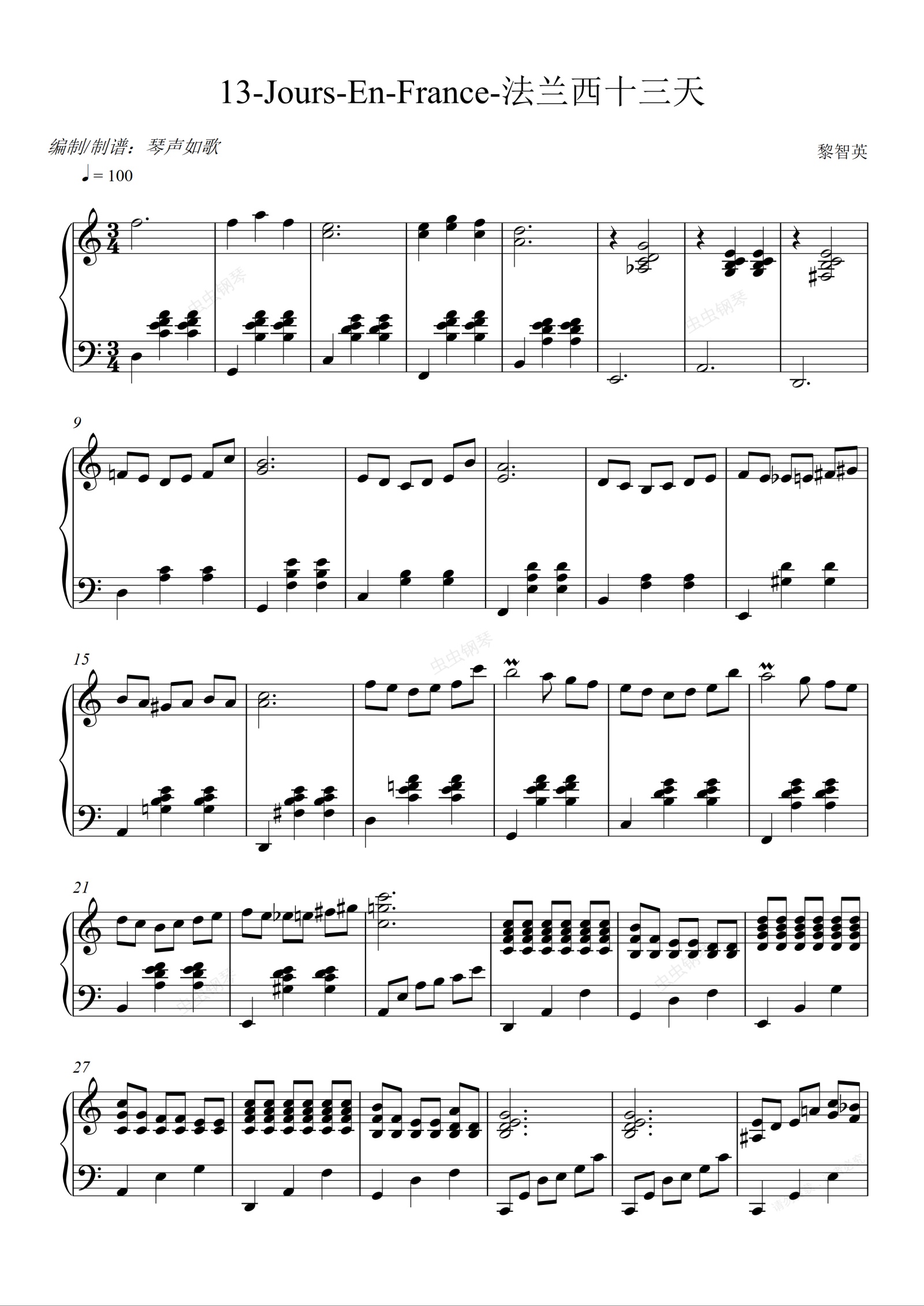 钢琴谱:13 jours en France -法兰西十三天 【治愈纯音乐】
