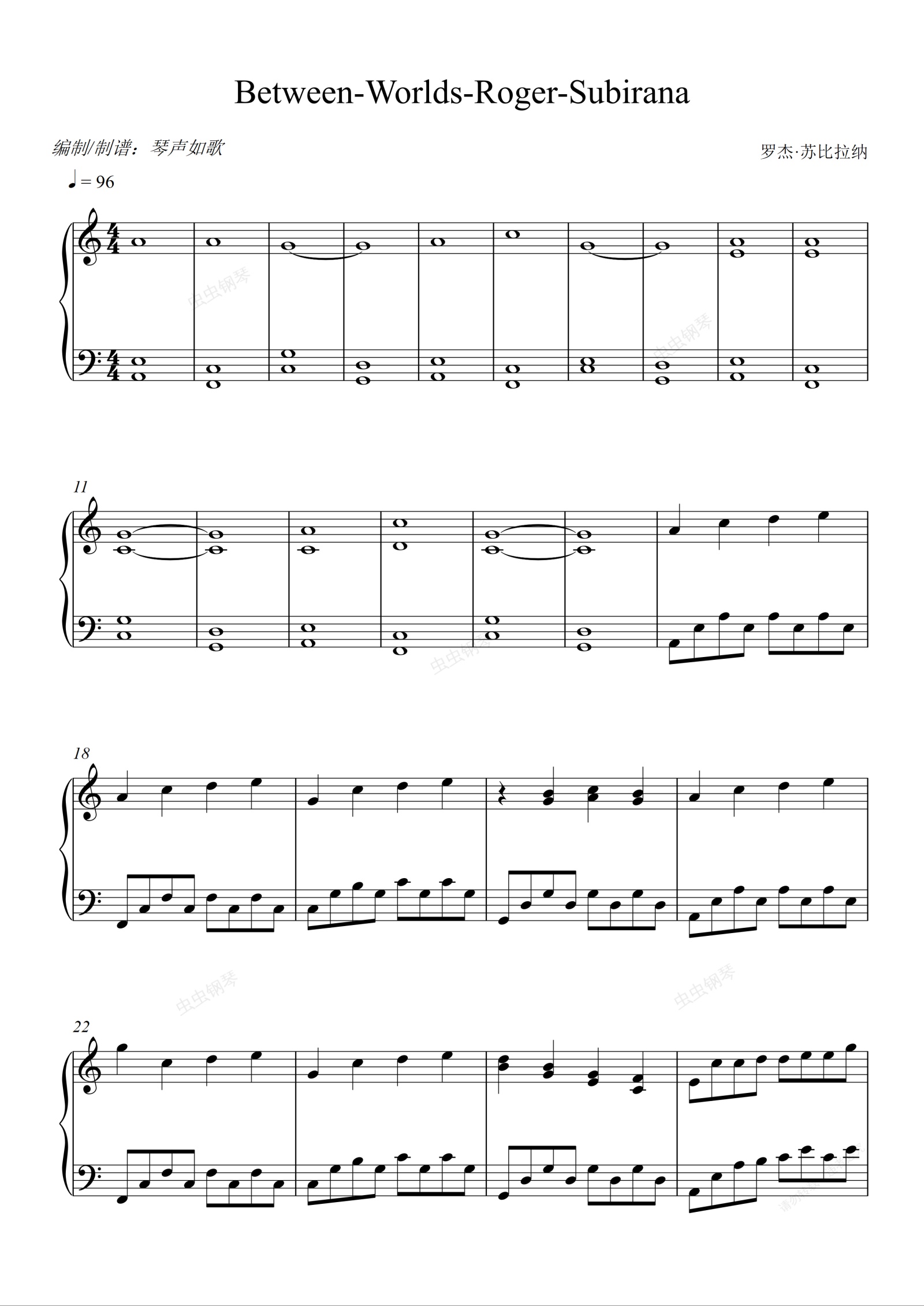 钢琴谱:Between Worlds-Roger-Subirana 【治愈好听纯音乐】