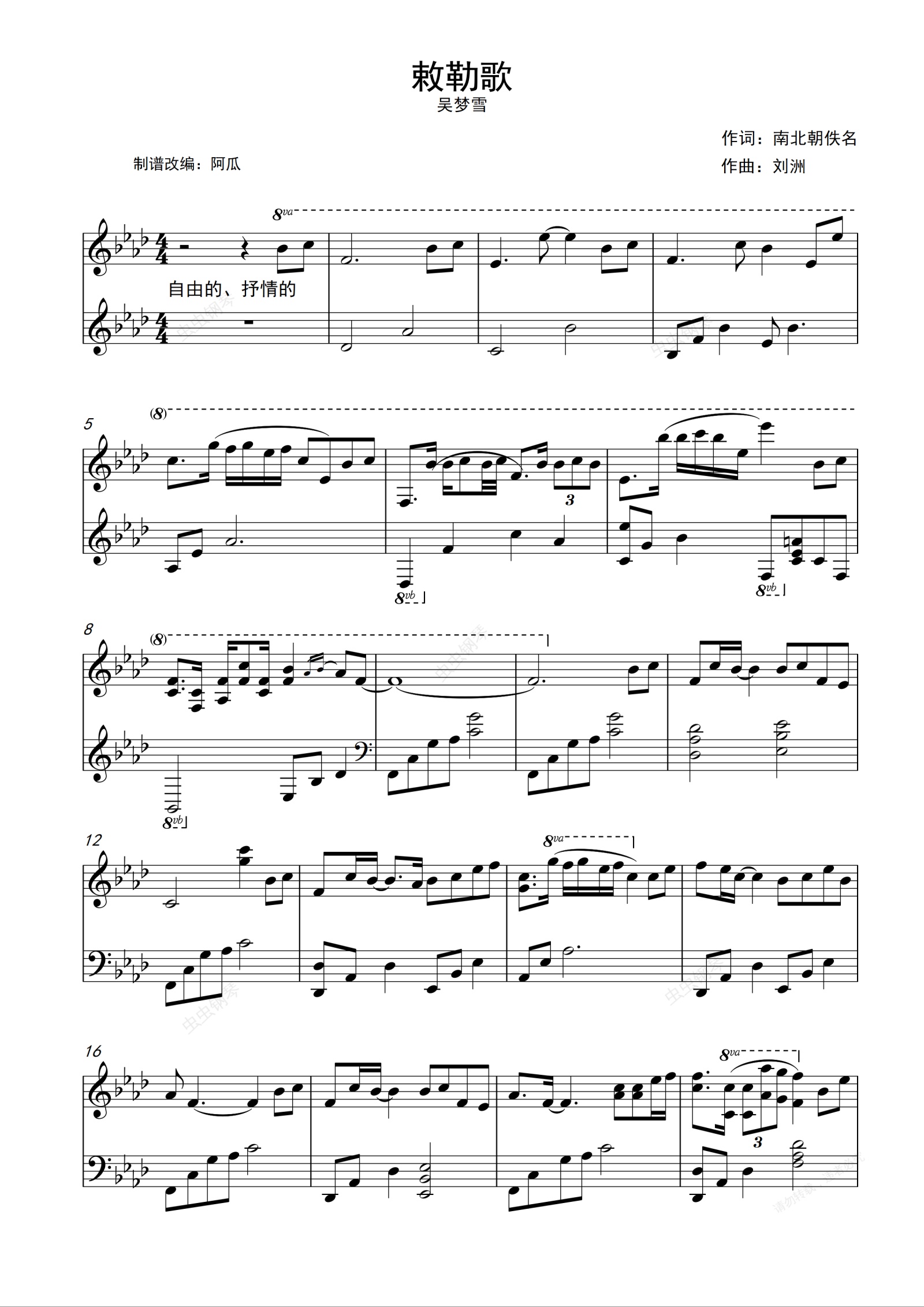钢琴谱:敕勒歌-吴梦雪(独奏)-修正版