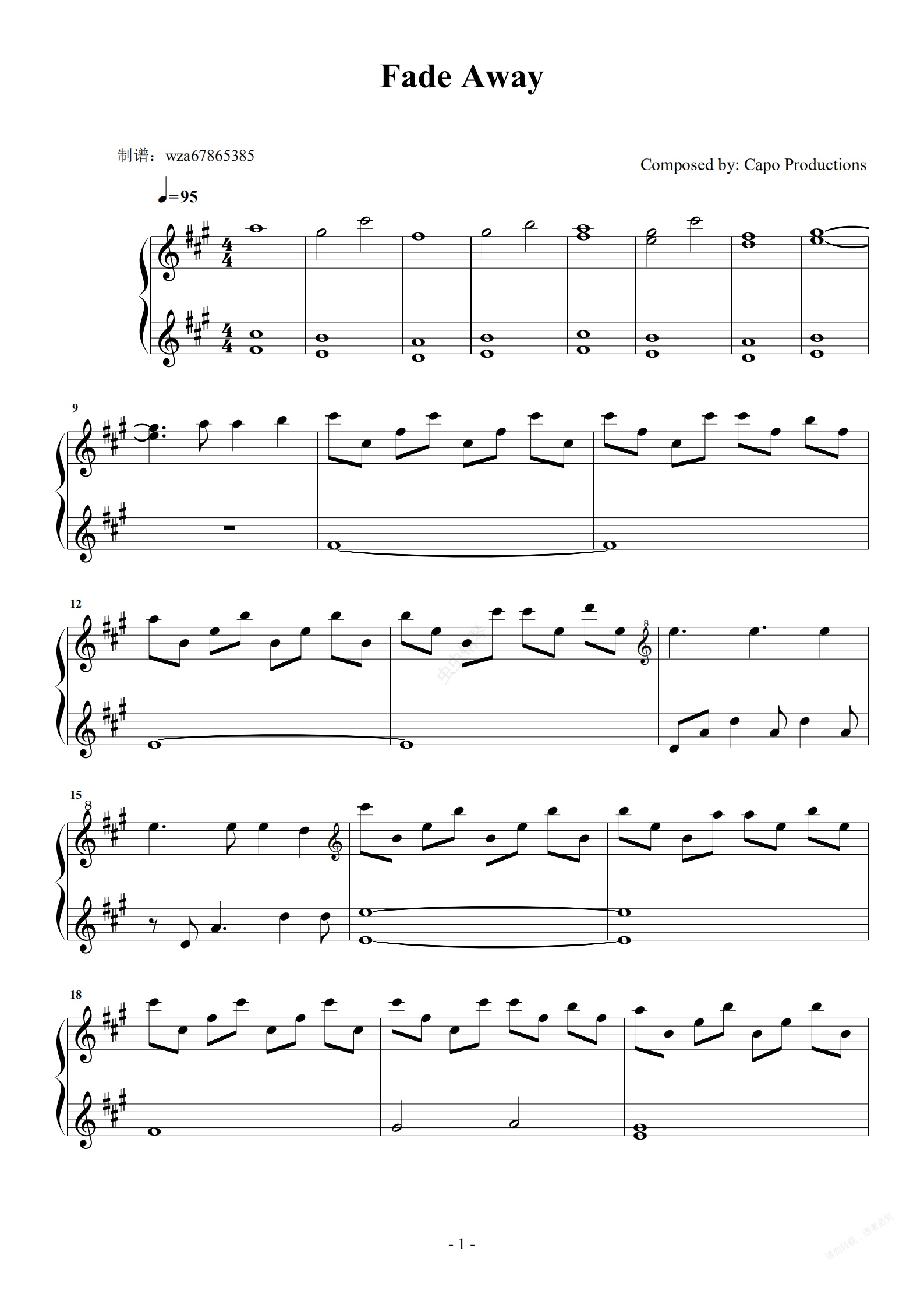 钢琴谱:Fade Away