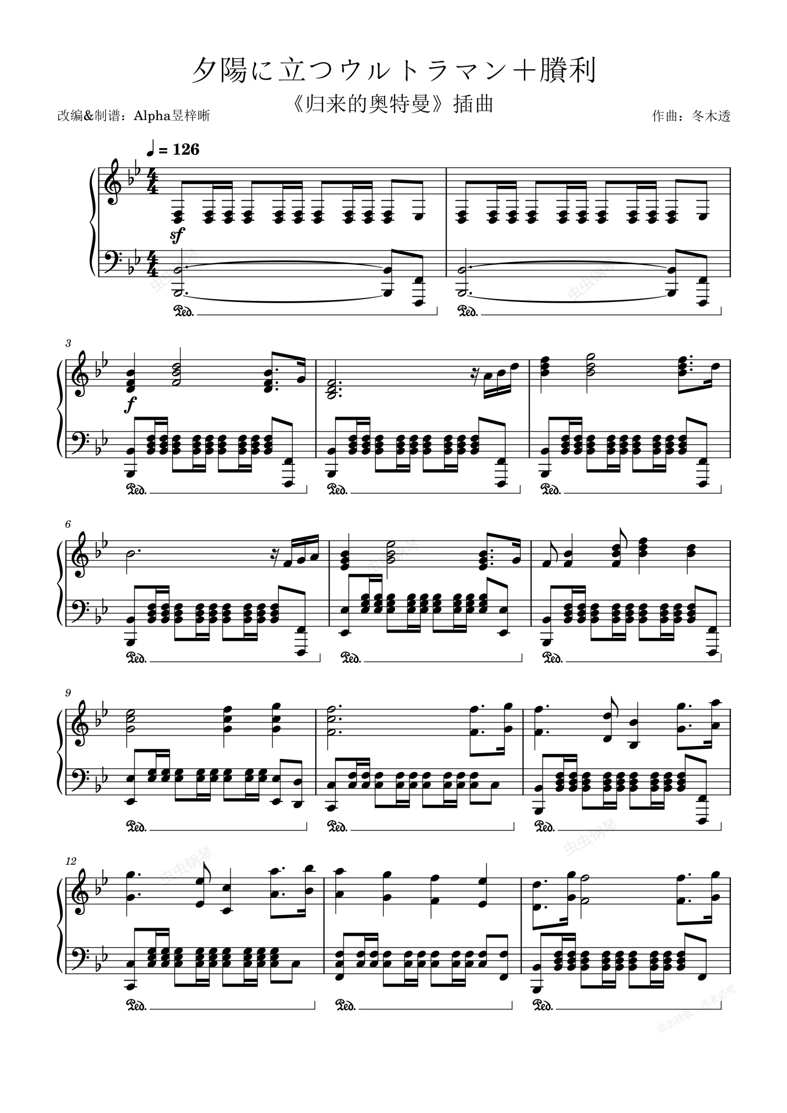 钢琴谱:夕陽に立つウルトラマン+賸利