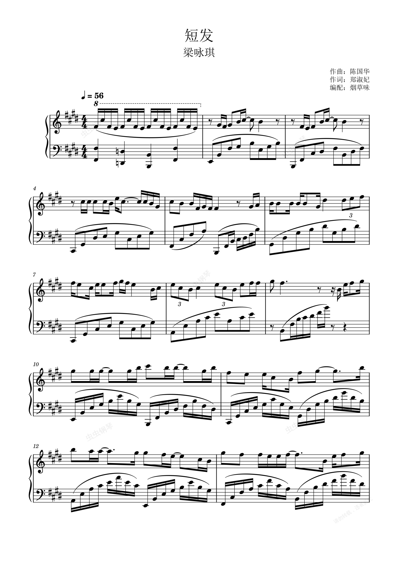 钢琴谱:短发(原调独奏谱)