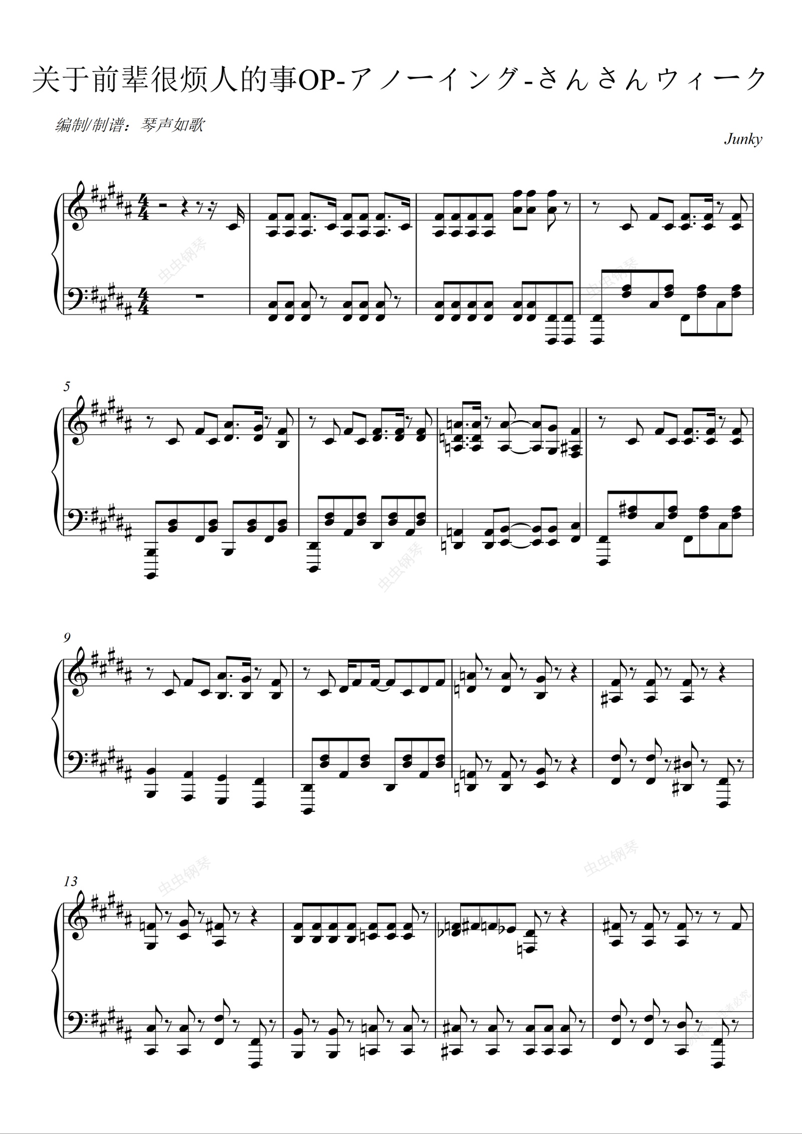 钢琴谱:关于前辈很烦人的事OP-アノーイング-さんさんウィーク