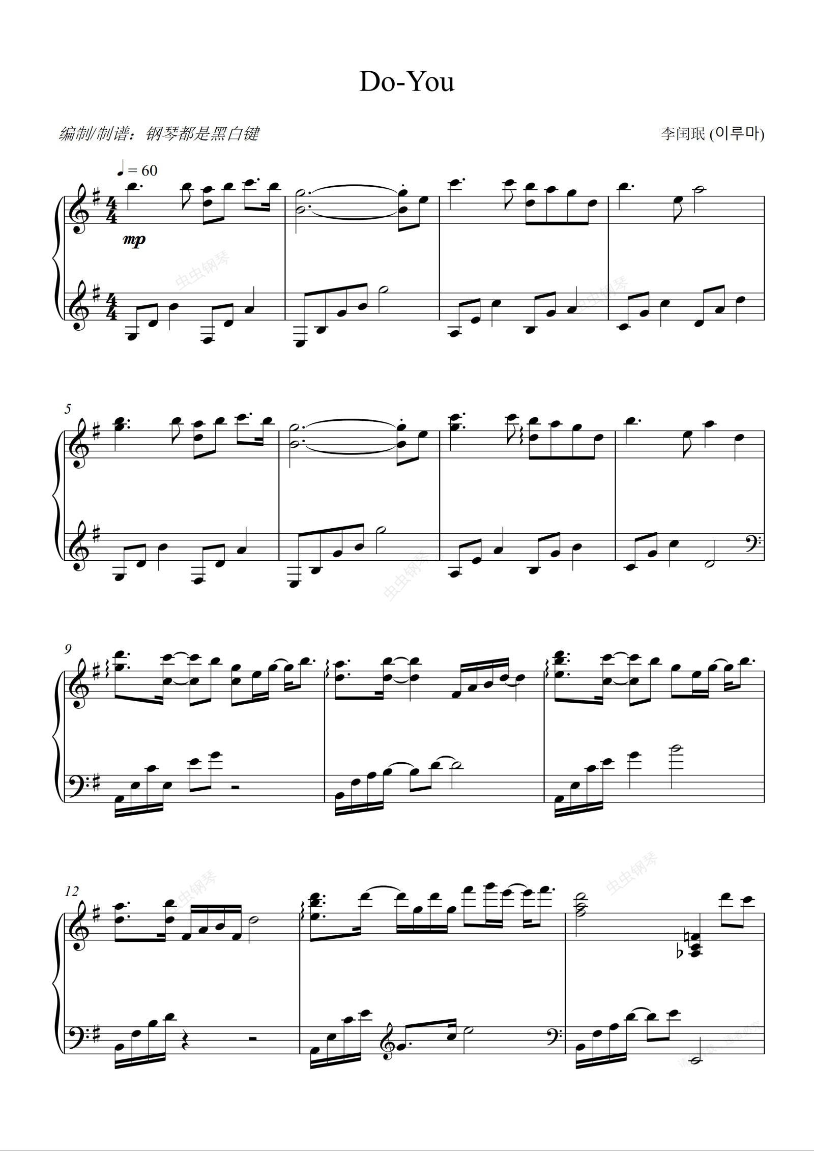 钢琴谱:李闰珉 - Do You (巨好听纯钢琴)