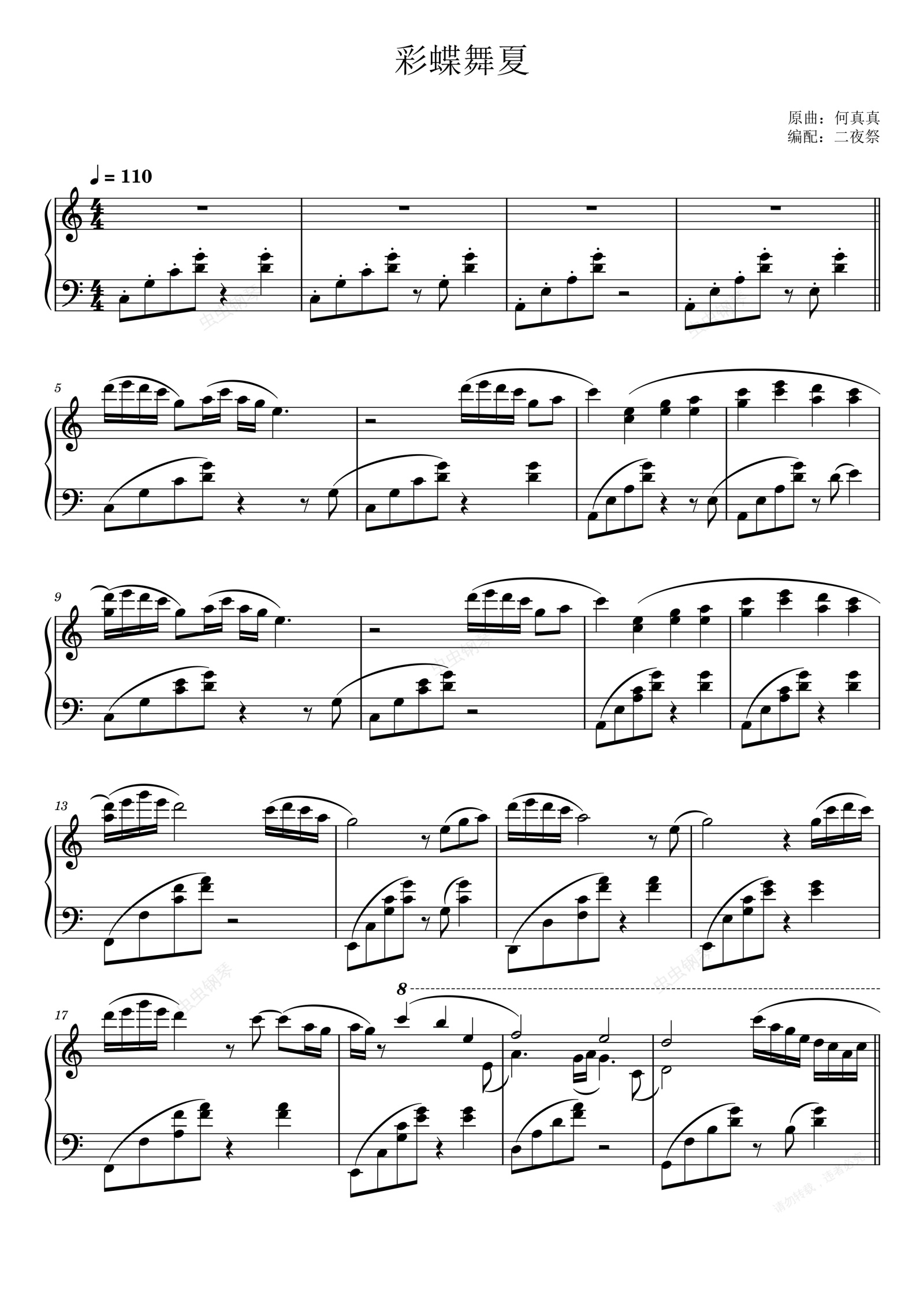 钢琴谱:【舌尖上的中国】彩蝶舞夏