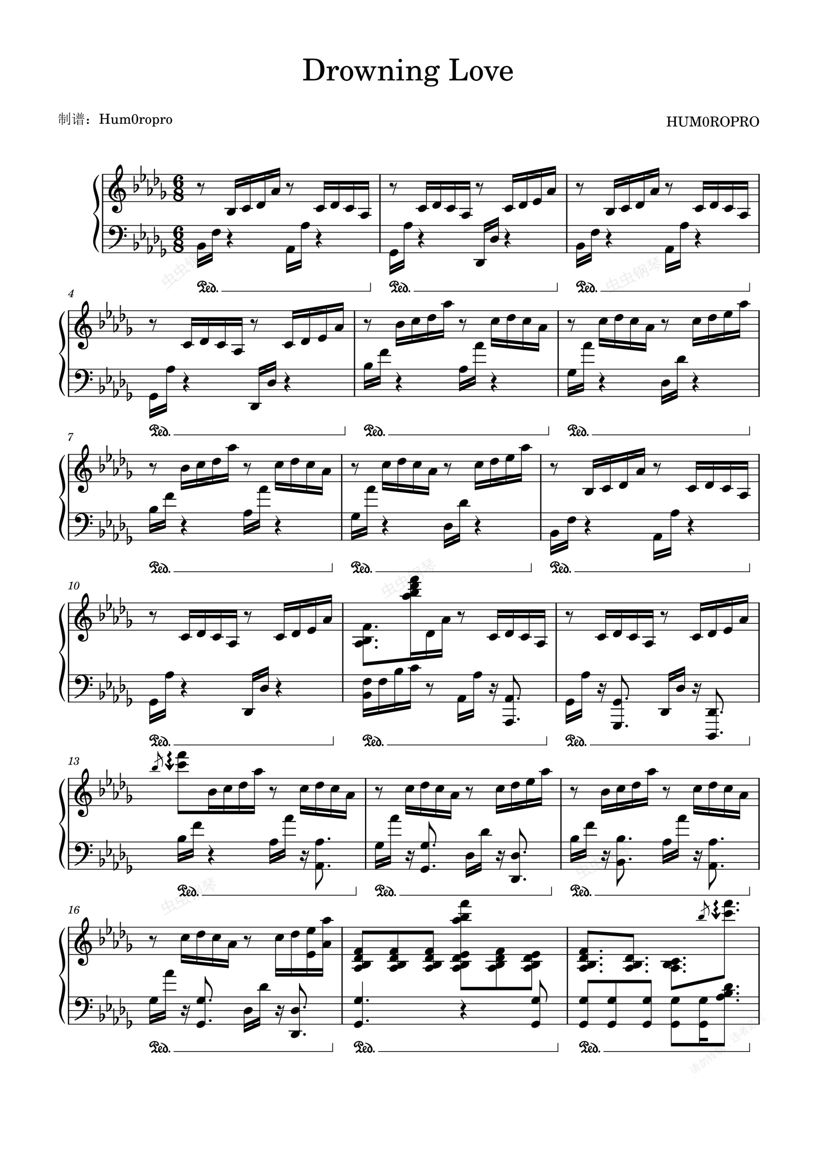 钢琴谱:Drowning Love 溺水小刀-追逐阿航
