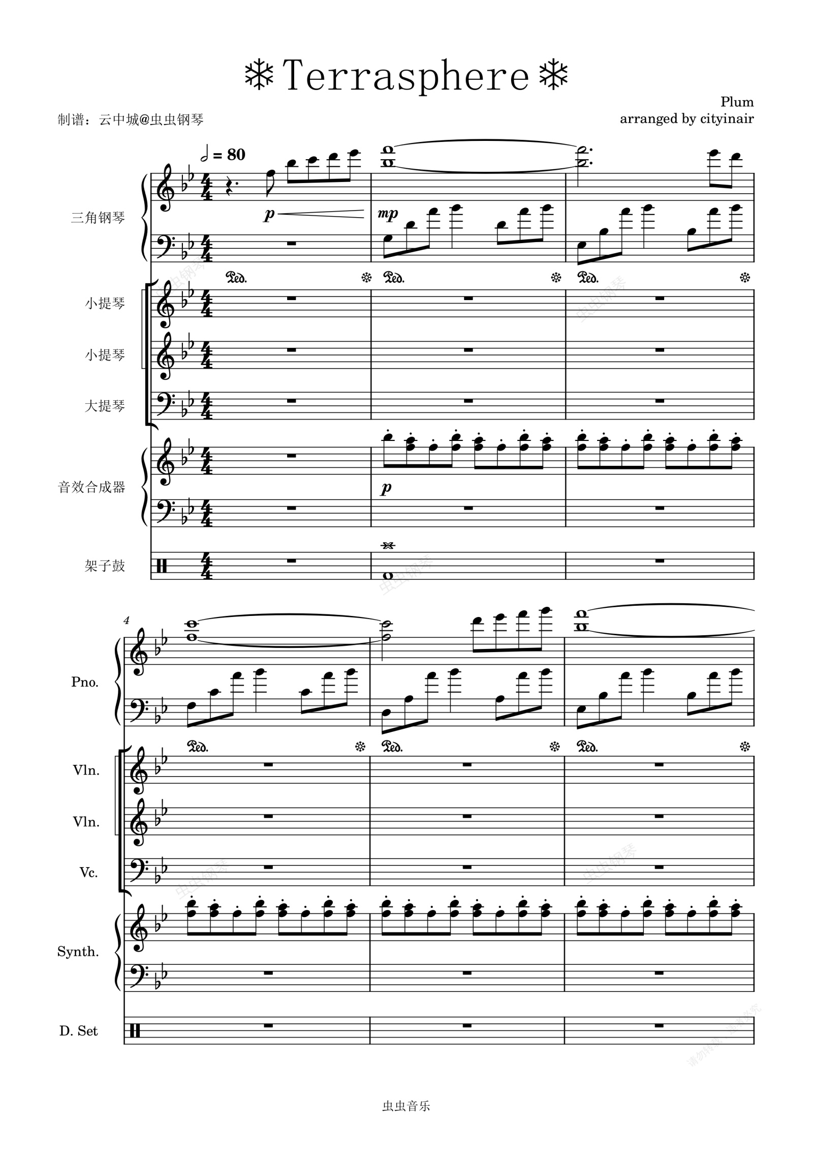 钢琴谱:【冰与火之舞】Terrasphere❄(总谱)